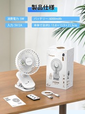 ■【45時間の連続使用が可能!】6000mAhの大容量バッテリーを内蔵しており、最大45時間連続使用ができるため、アウトドアや野外活動でも安心して使えます。コンパクトながらもパワフルな性能を持つこの扇風機は、キャンプや旅行に最適です。