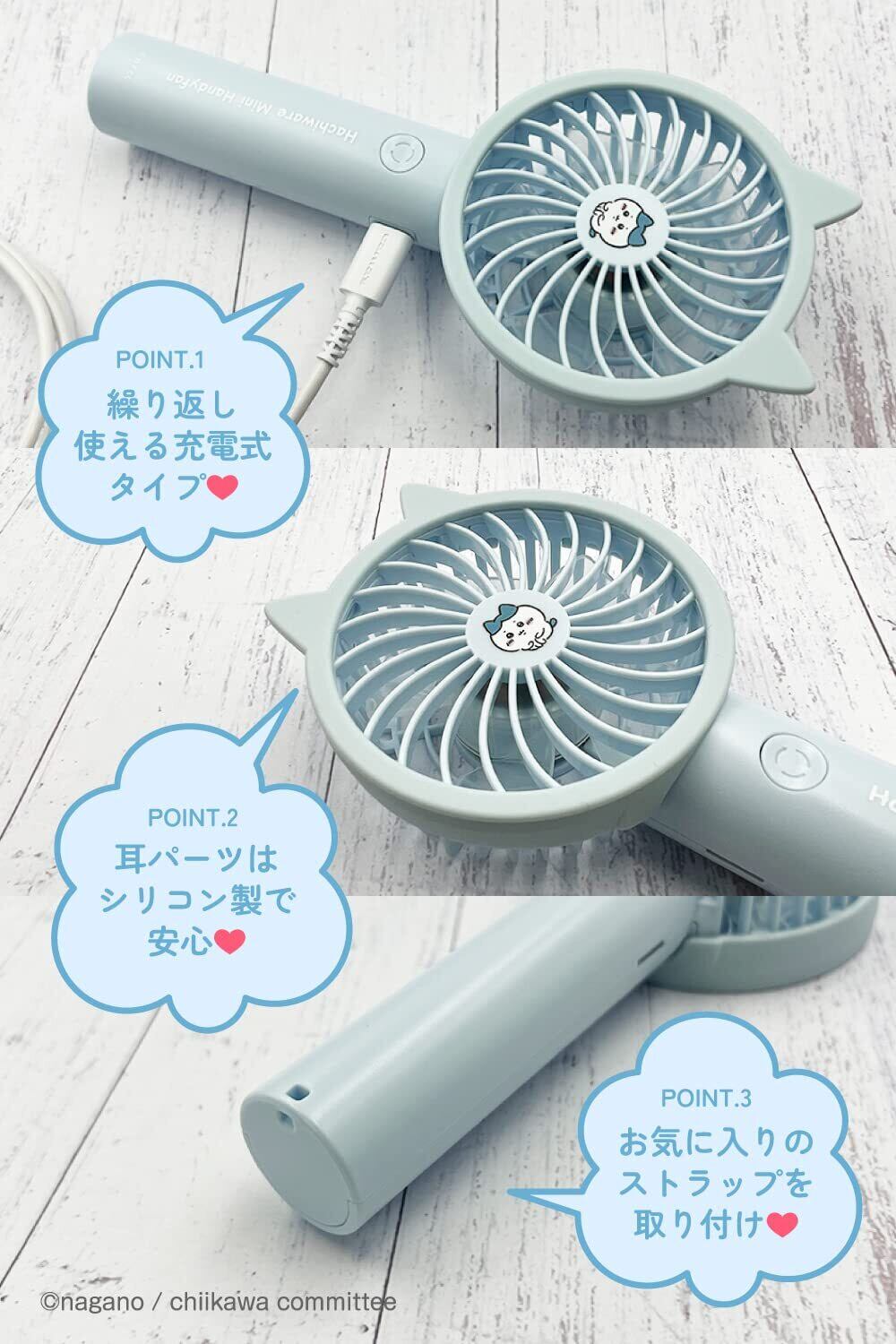 多摩電子工業 ちいかわハンディファン SQ-SK121BB-H (ハチワレ ベビーブルー) シリコン製の耳カバー 取外し可能 スタンド付属 風量調整機能 軽量&コンパクト手持ち扇風機 卓上扇風機 ギフト プレゼントに最適 USB充電 Type-C対応
