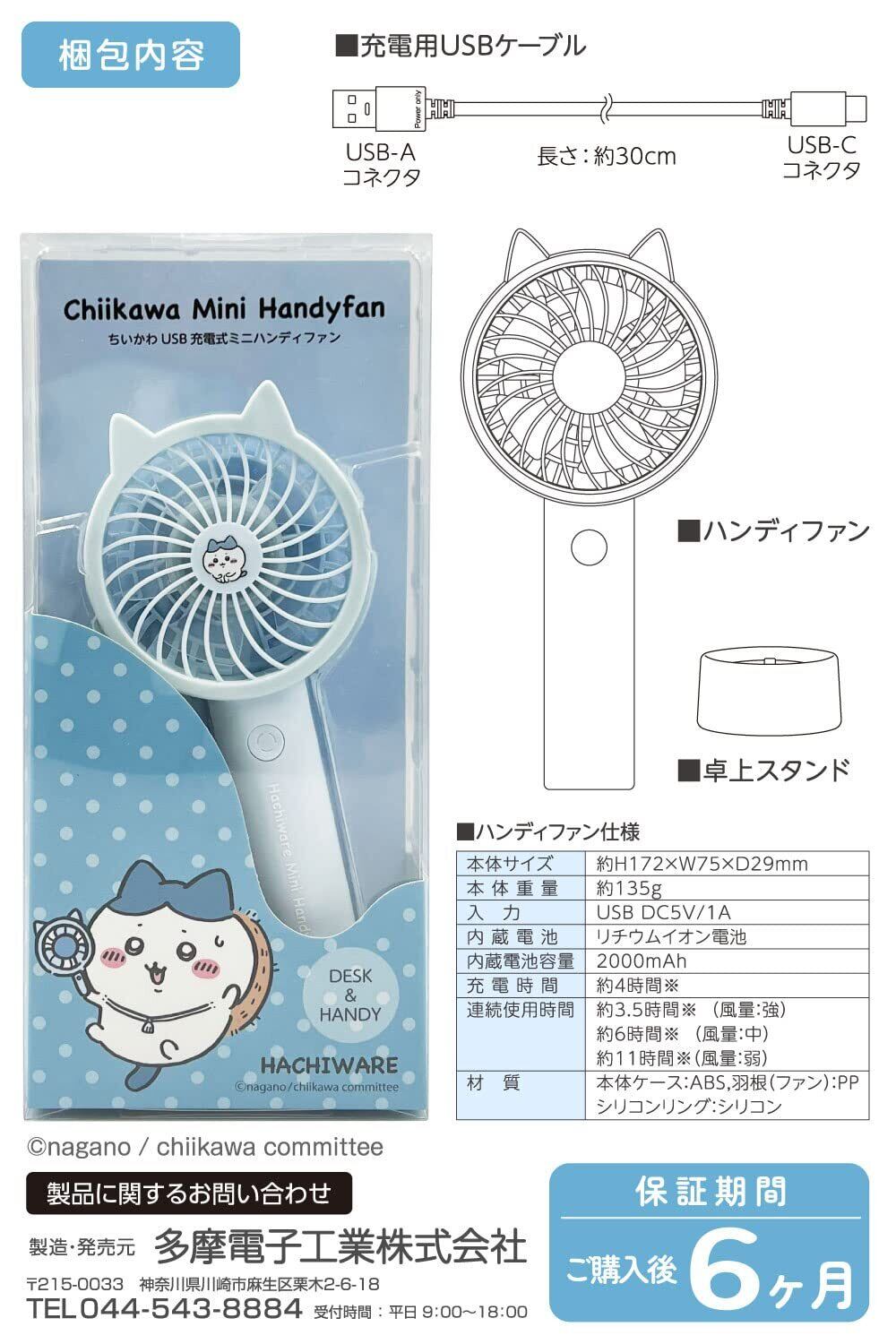 【在庫限り】多摩電子工業 ちいかわハンディファン SQ-SK121BB-H (ハチワレ ベビーブルー) シリコン製の耳カバー 取外し可能 スタンド付属 風量調整機能 軽量&コンパクト手持ち扇風機 卓上扇風機 ギフト プレゼントに最適 USB充電 Type-C対応
