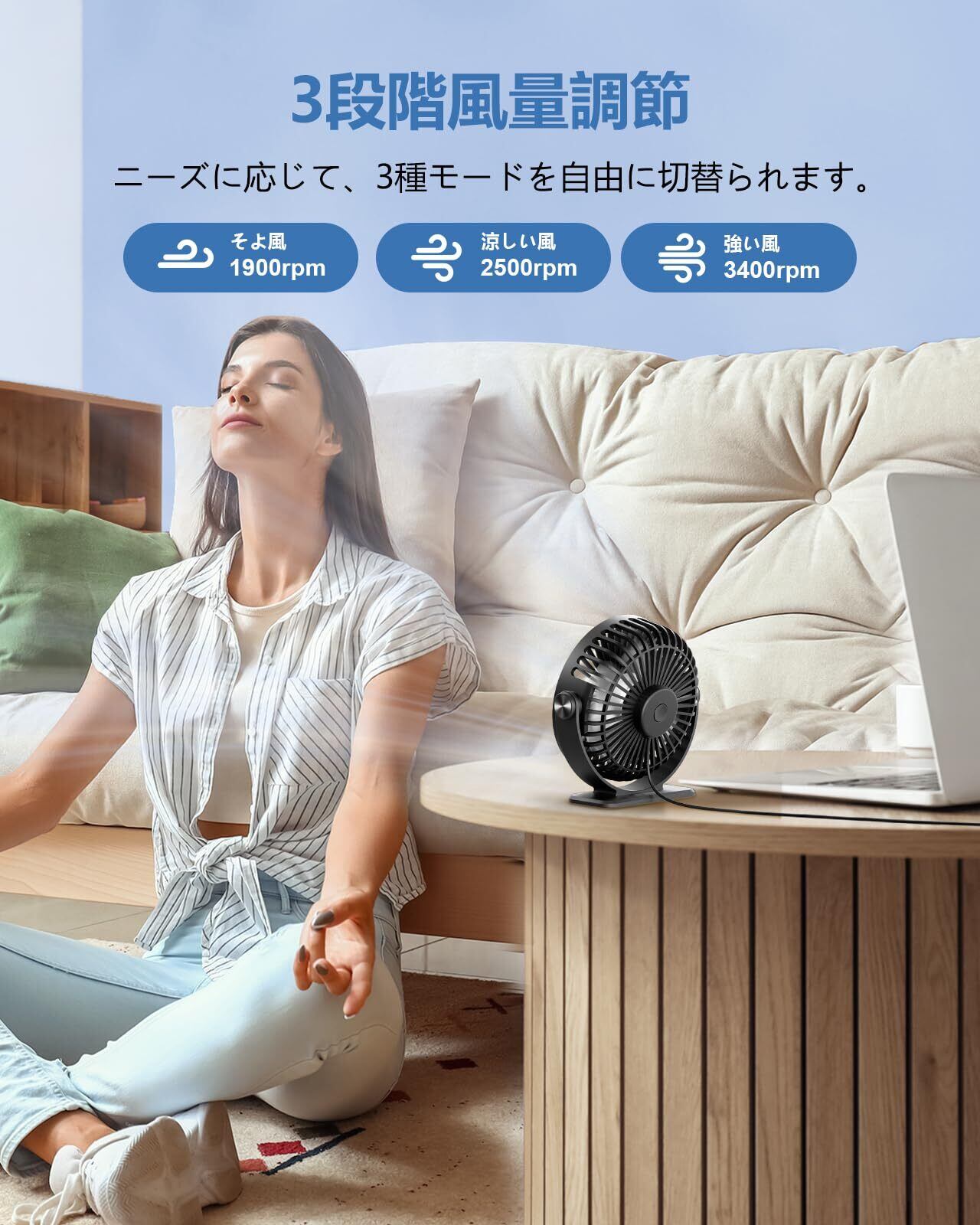 ■【静音設計で安心して使える!】運転音が気にならない静音設計を採用しており、寝室や学習スペースでも安心してご利用いただけます。優しい風が、リラックスタイムや集中したい時にもぴったり寄り添います。