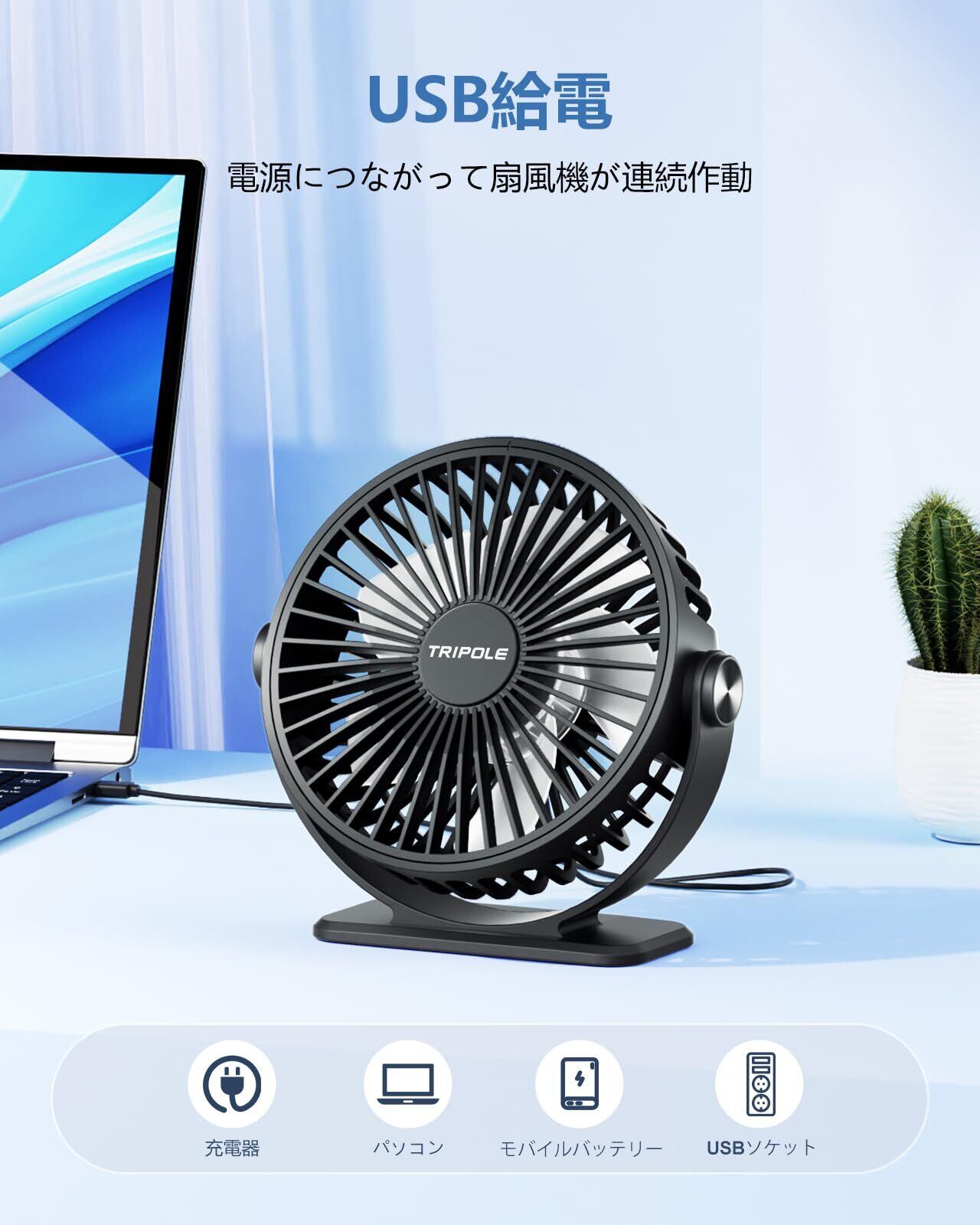 【数量限定】TriPole USB卓上扇風機 静音【2025小型扇風機 USB給電式】360°角度調節可能 三段階風量調節 パワフル送風 ミニ扇風機 usbファン デスクファン 熱中症対策 オフィス/自宅/寝室/卓上/車/用 ブラック