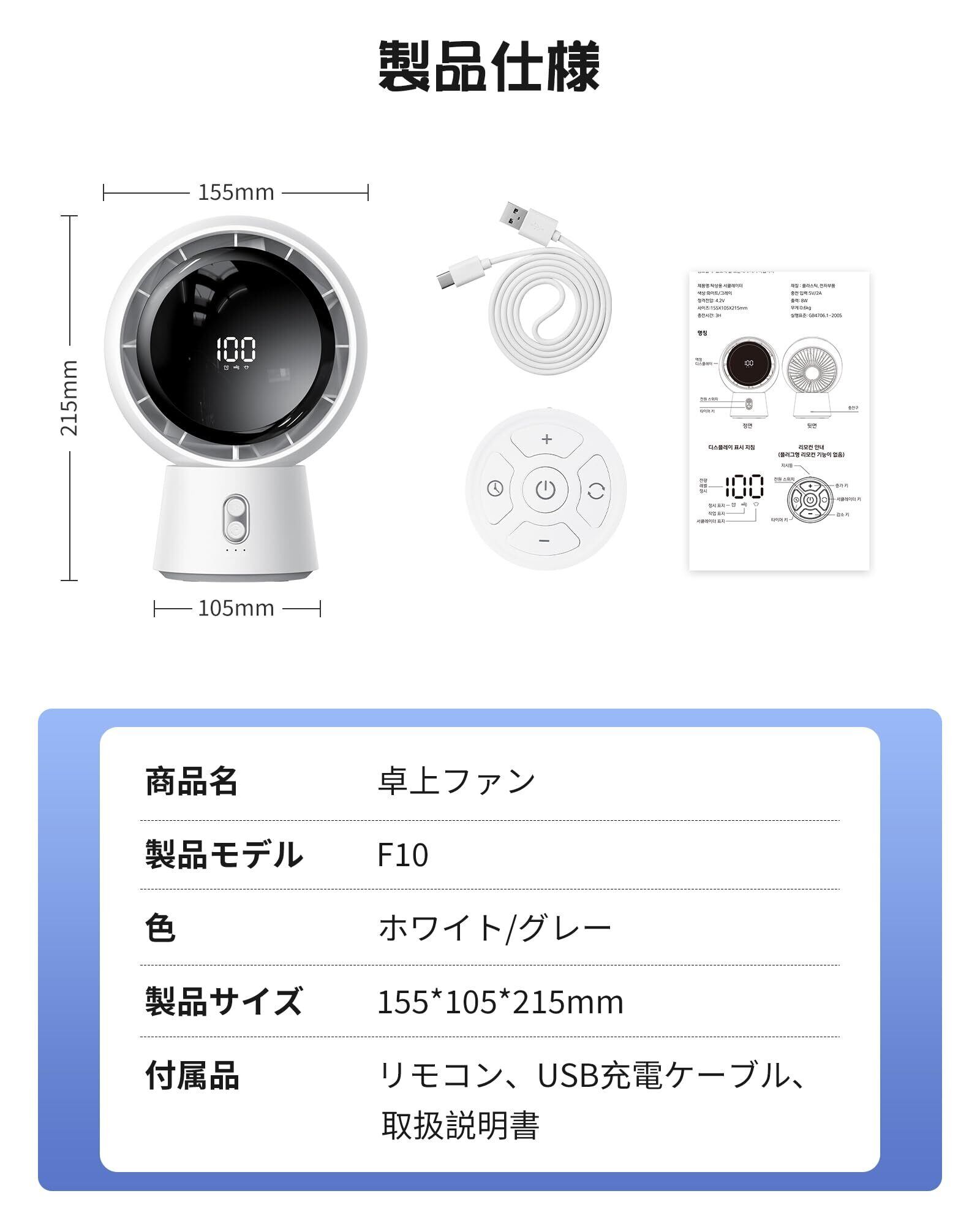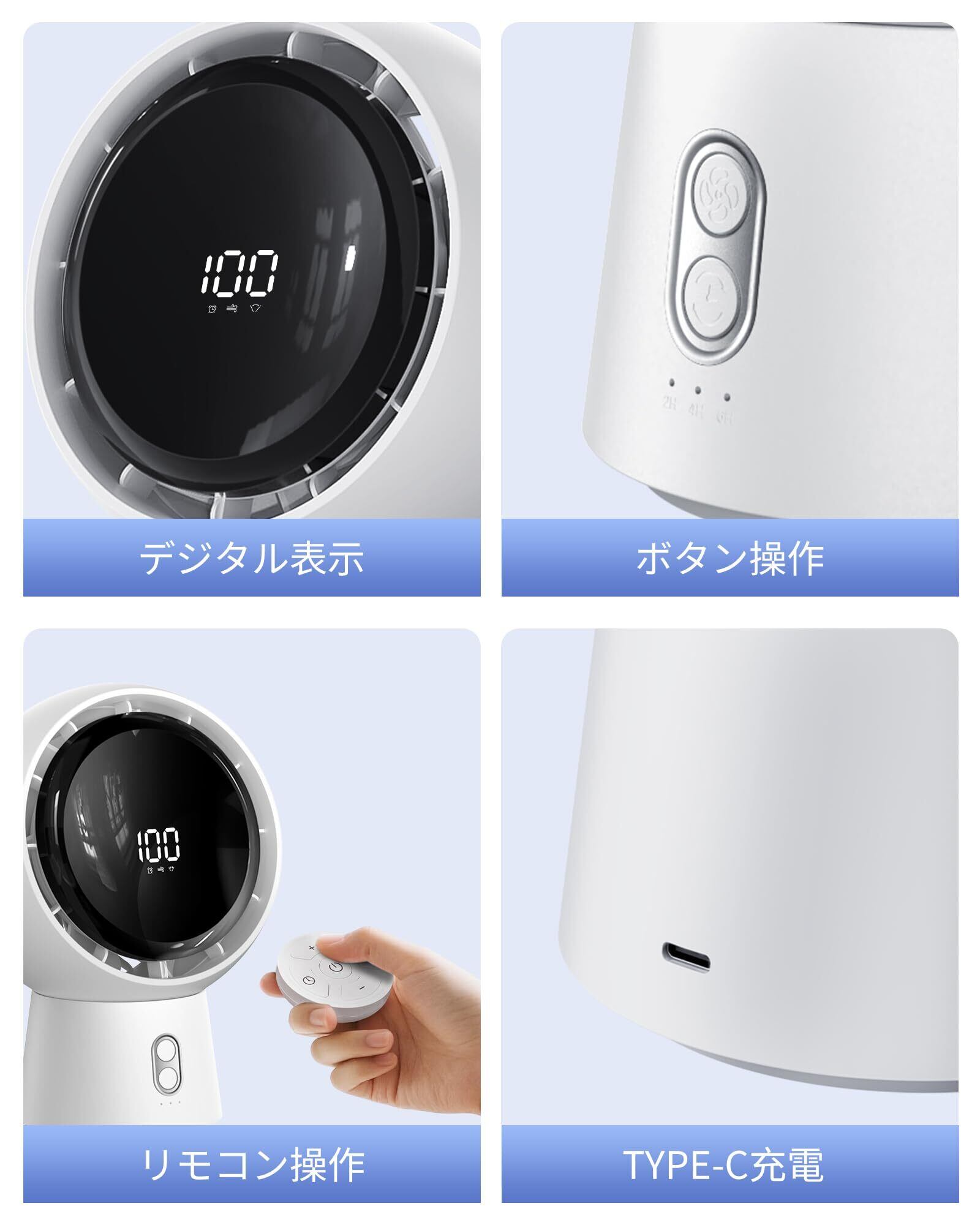 卓上扇風機 サーキュレーター 空気循環ファン 扇風機 卓上 コードレス 大風力 28dB静音設計 USB充電式ファン リモコン付き 強力冷感 自動首振り パワフル送風 コンパクト タイマー機能 小型 キャンプ 風量5段階調節 広角送風 節電対策 猛暑対策 省エネ 7枚羽根 ポータブル リビング 車中泊 (ハイグレー)