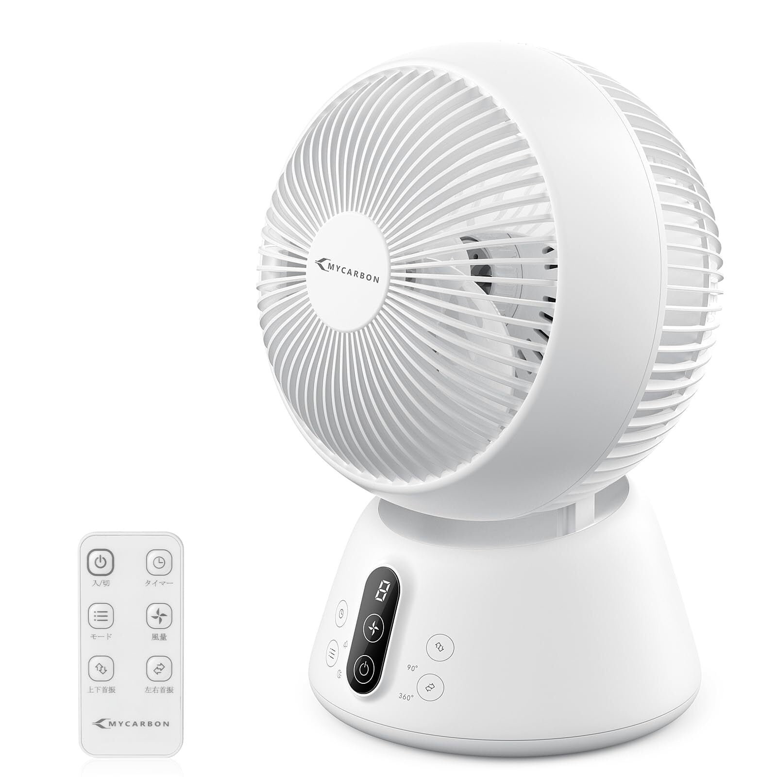 【在庫限り】【新登場】MYCARBON サーキュレーター 静音 360°首振り DCモーター 扇風機 分解洗える おしゃれ 自動消灯節 パワフル送風 8段階風量 リモコン付き 9Hタイマー 小型 空気循環 部屋干し 衣類乾燥 梅雨 除湿 兼用