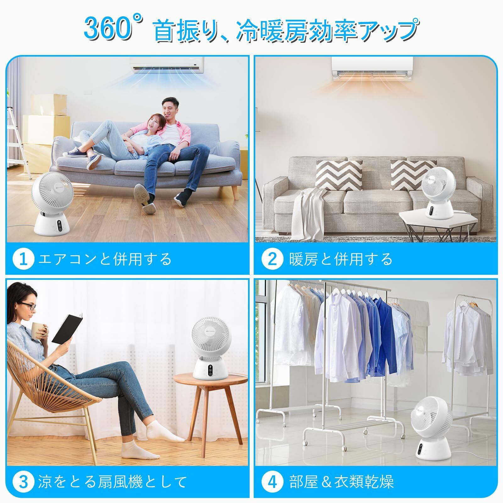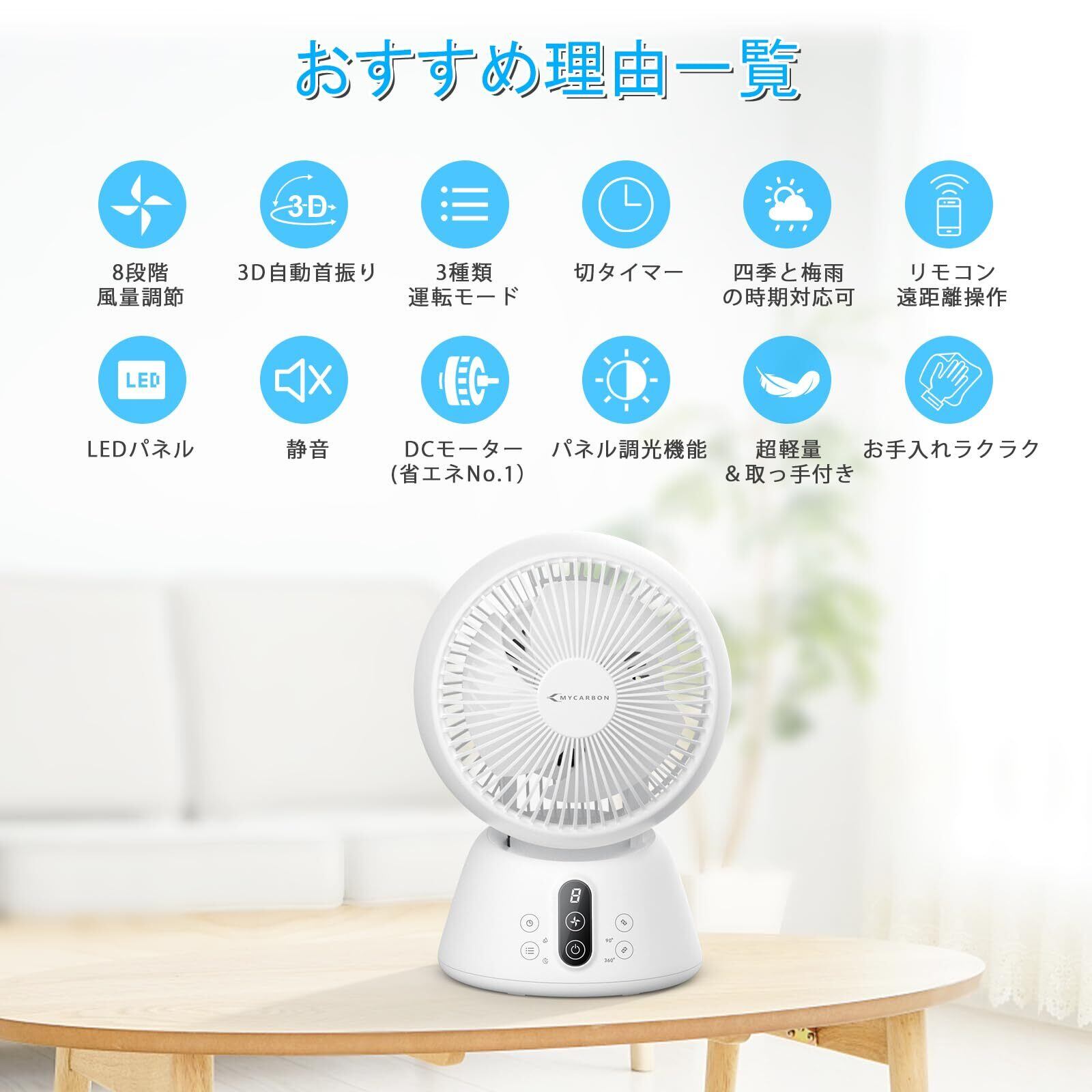 【新登場】MYCARBON サーキュレーター 静音 360°首振り DCモーター 扇風機 分解洗える おしゃれ 自動消灯節 パワフル送風 8段階風量 リモコン付き 9Hタイマー 小型 空気循環 部屋干し 衣類乾燥 梅雨 除湿 兼用