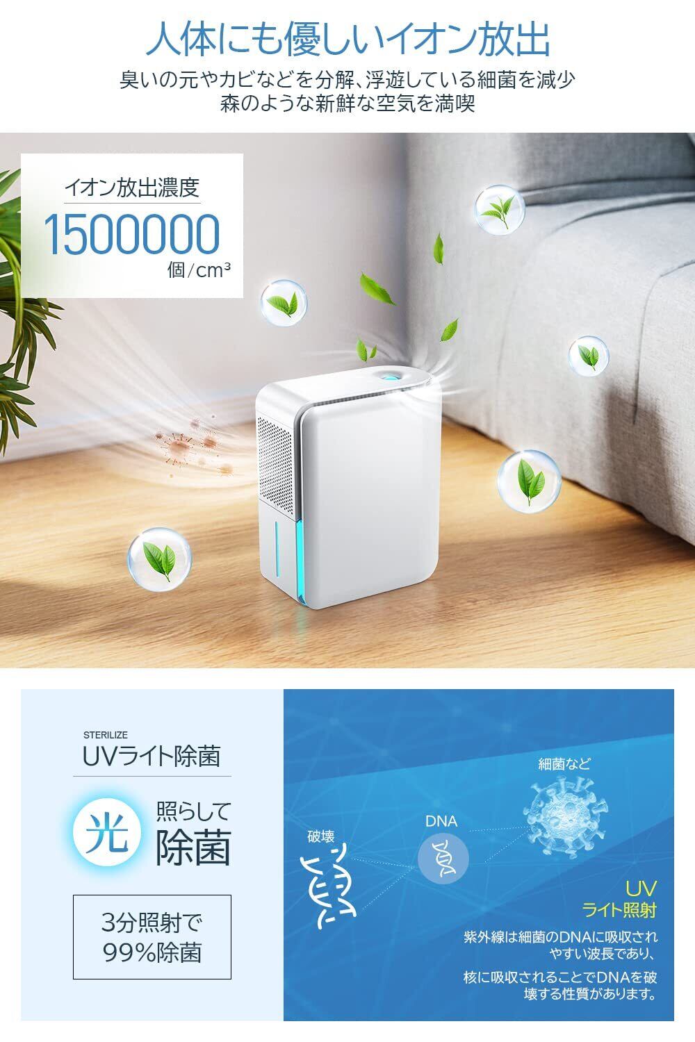 玄関、クローゼット、押入れ、下駄箱、脱衣所、キッチン、浴室、子供部屋、ガレージなど狭い空間の除湿にぴったり、複数の部屋での使いまわしも便利で、一人暮らしでも場所取らずに使えます。圧倒的な静音仕様で運転中はほぼ無音、睡眠、仕事、読書を妨げず、夜の部屋干し、オフィスや図書館での除湿用にも使えます。満水になると赤ライトが点灯して自動的に運転停止になり、睡眠中や留守の時にも水漏れの心配はありません。
