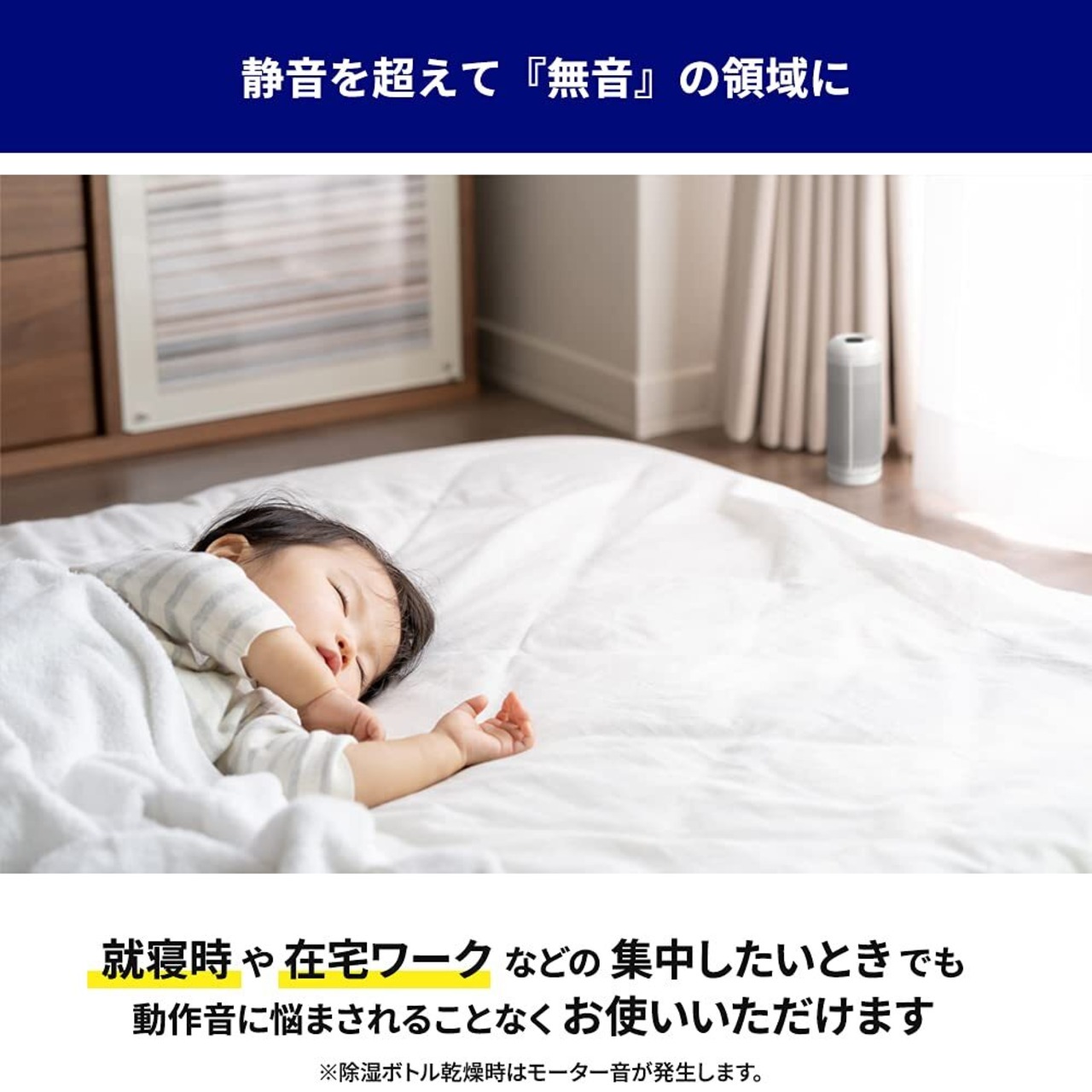 【サイレント】除湿剤が空気中の水分を吸うため、除湿中は無音のため音が気になる場所でも快適に使用できます。