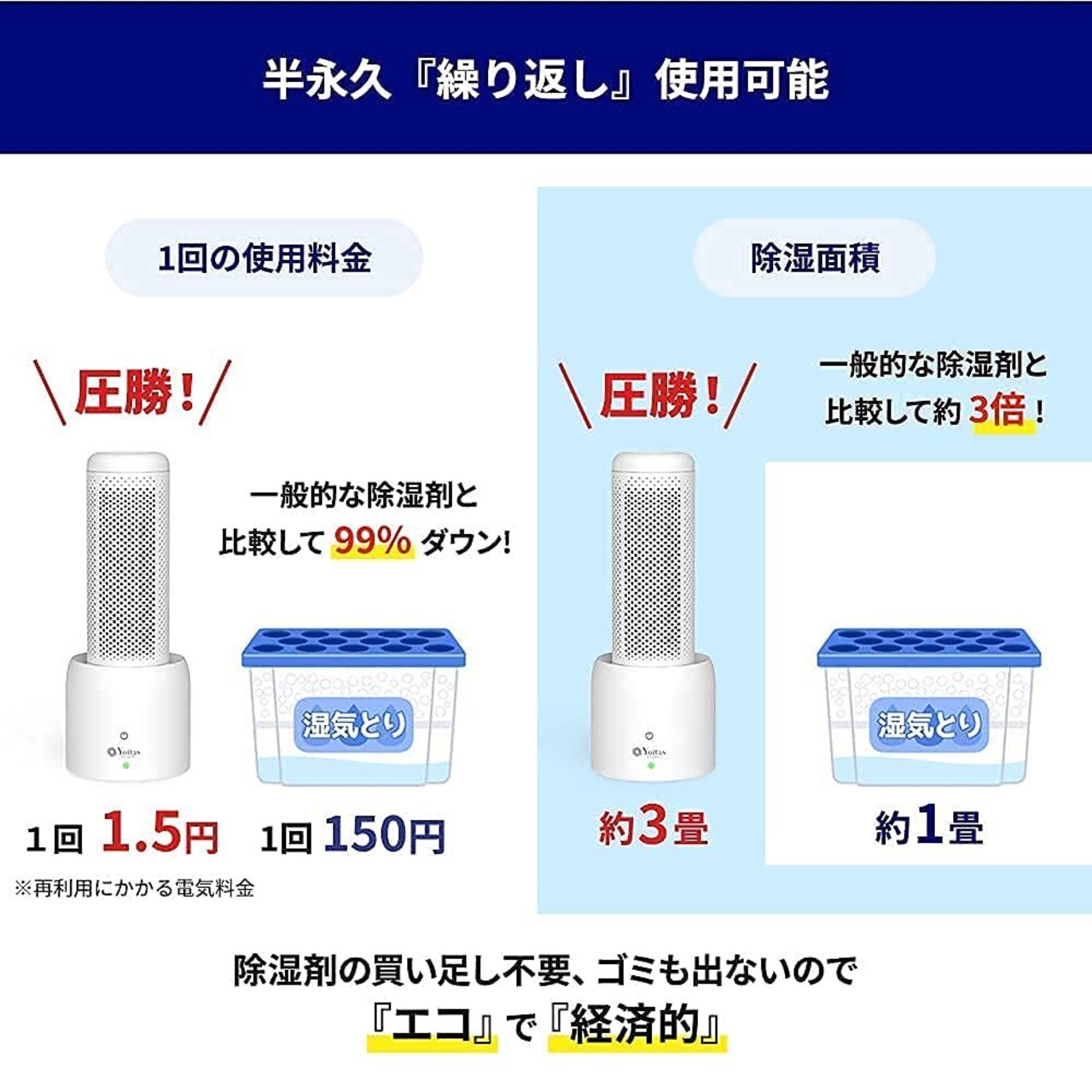 【繰り返し利用可】除湿ボトルの水分が一杯になったら、ドライスタンドで乾燥させることで再利用することができます。乾燥させる電気代は1回約1.5円と省エネです。