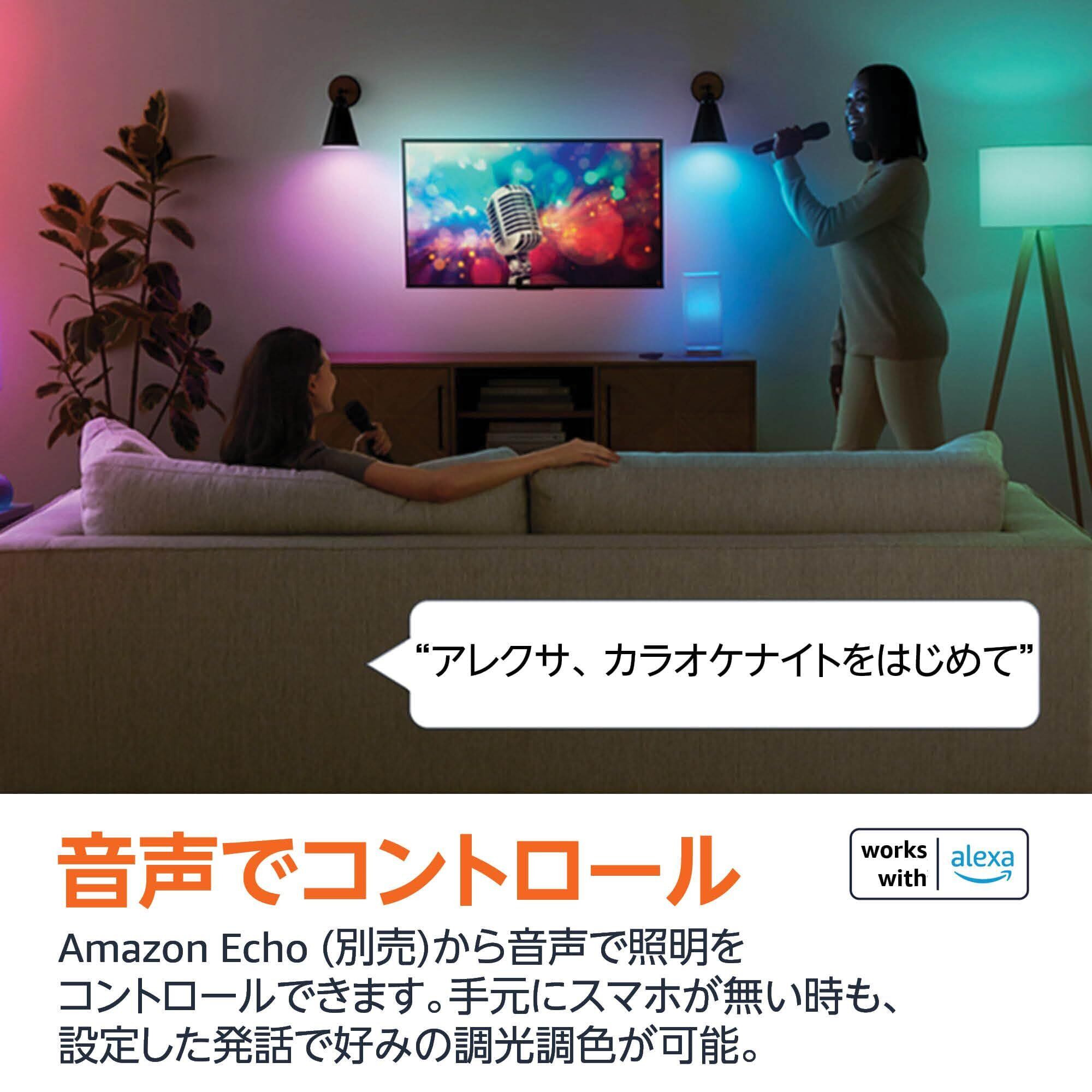 【 Echo(別売)と使ってハンズフリー操作】別売の Echoがあれば、スマホが手元にない時や手が離せない時も、「アレクサ、電気を消して」で完全ハンズフリー操作を実現できます。