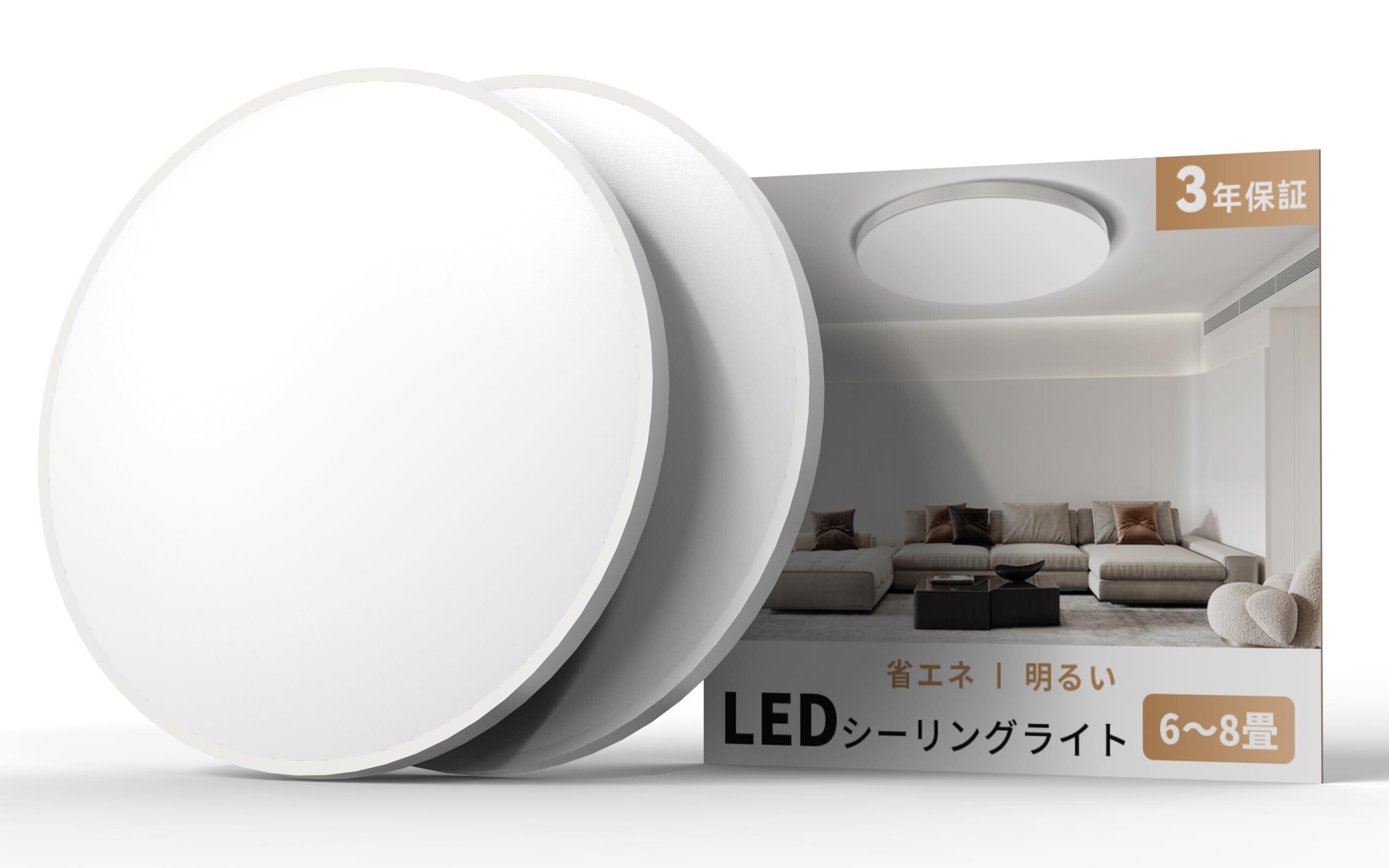 省エネ性能と明るさを両立した次世代型LEDシーリングライト。高効率LEDレンズを採用し、わずか30Wで3600lmの高輝度を実現。従来の蛍光灯より明るく、電気代も約半分に抑えられます。6畳のお部屋全体をムラなく照らし、読書・勉強・料理など幅広いシーンで活躍します。 昼白色5000Kの単色タイプで、自然光に近い清潔感のある白色光を再現。目に優しく、リモコン操作なども不要なシンプル設計で、毎日ストレスなくお使いいただけます。 設置もわずか1分。アダプター一体型のワンタッチ構造で、工具も配線も不要。引掛けシーリングに押し込み、回すだけで簡単に取付完了。初めての方や女性の方でも安心です。 厚さ約4cmの超薄型設計で、空間に圧迫感を与えず、低天井にも最適。スタイリッシュでどんなインテリアにも自然に馴染みます。 日本国内のPSE認証取得済みで、約40,000時間の長寿命設計。通常使用で約10年間交換不要。さらに3年間のメーカー付きで、万が一のトラブルにも迅速に対応いたします。