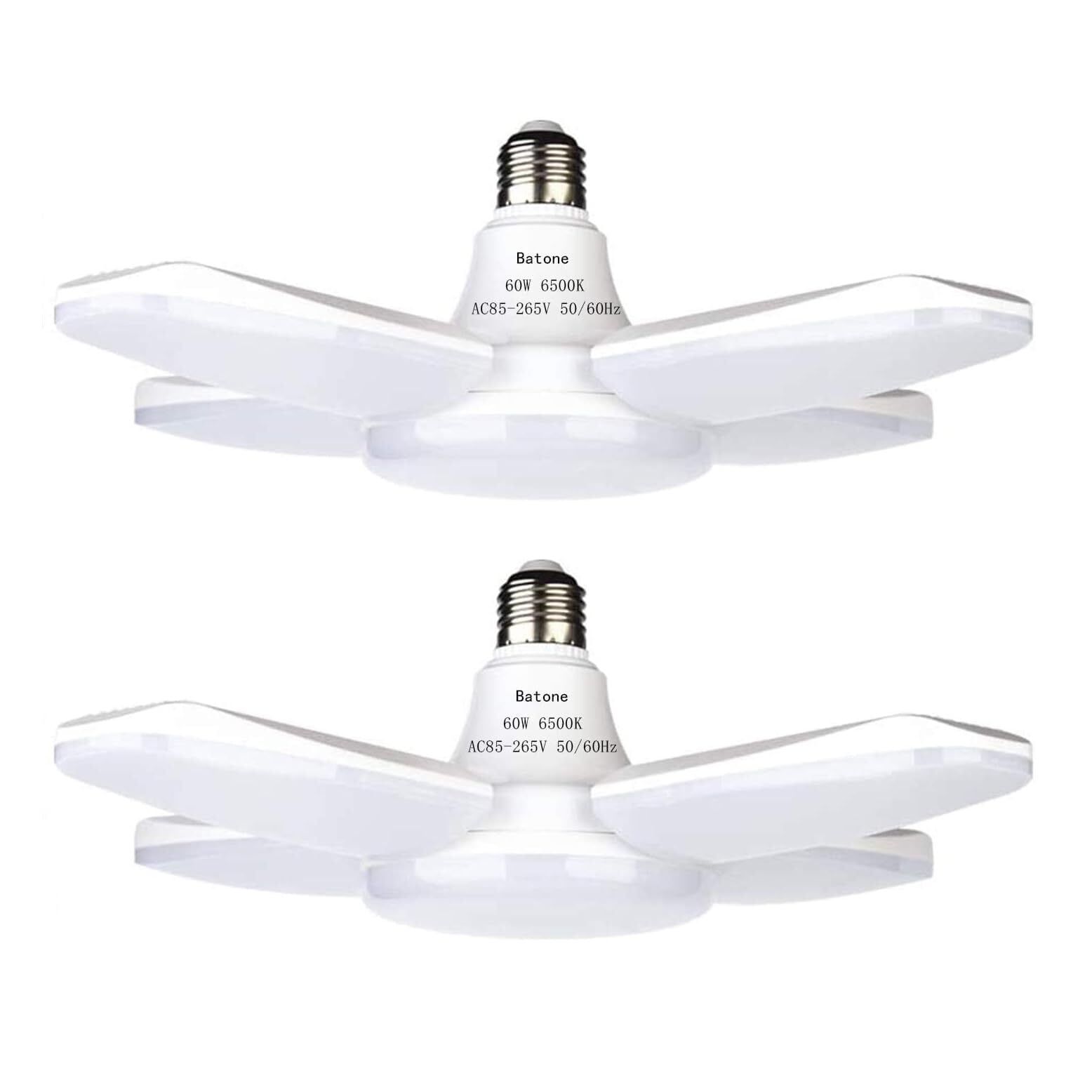 Batoneガレージライトled 作業灯 led ペンダント60W 6500K 天井照明 取付簡単 工事不要 角度調節可能 車庫 倉庫 納戸 工事用照明 昼白色(2個)