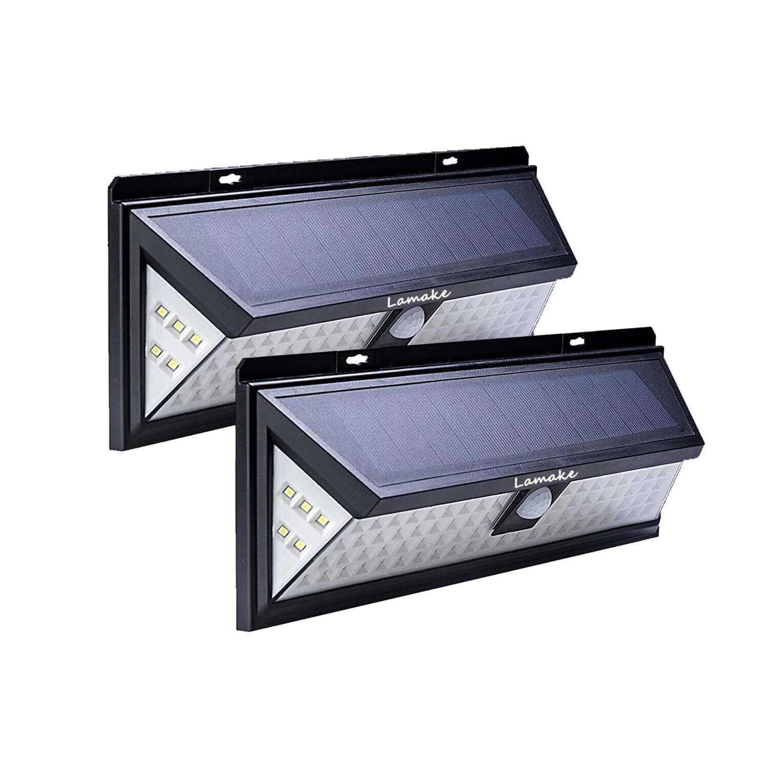 Lamake 超超明るい 4400mAh大容量バッテリー内蔵 センサーライト ABS ソーラー充電 三つ照明モード 明暗センサー 取付簡単 2pack(8W*2個)