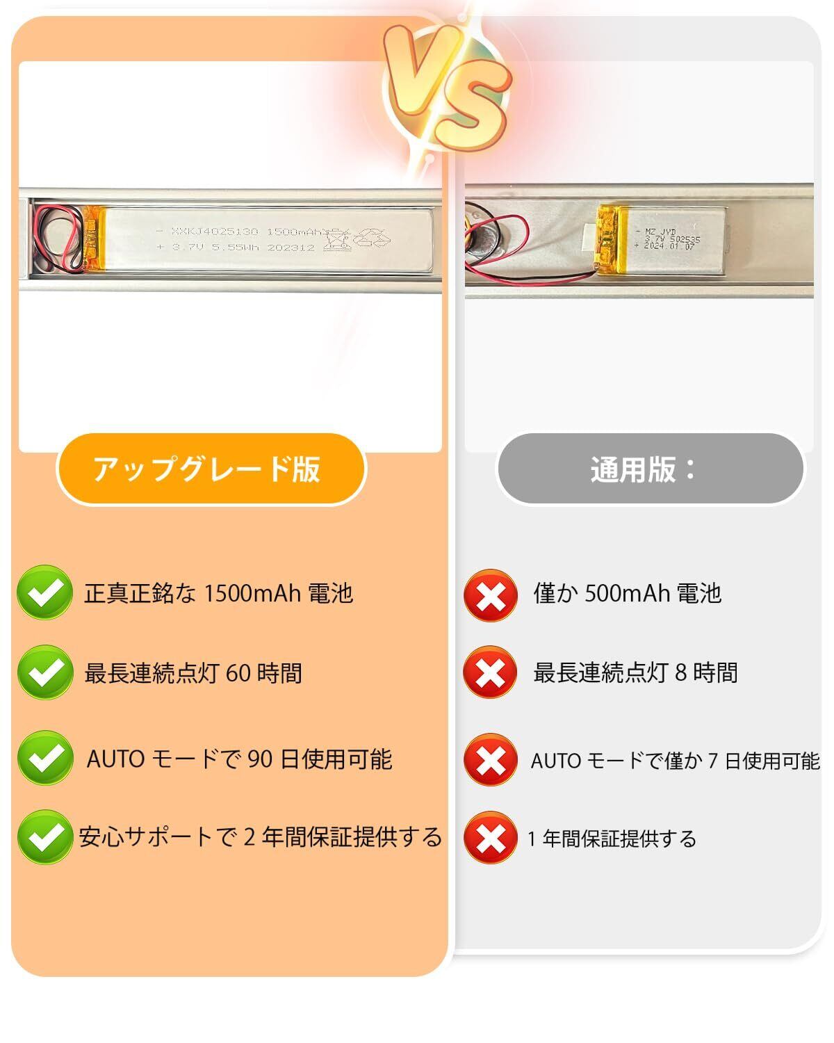 【2年間品質】ご購入日から2年の安心長期が付いております。期間内に、初期不良・自然故障などございましたら、は交換サービスを提供します。いつでも、ご遠慮なくにてご連絡ください。 ご注意:充電できない場合は、充電器または充電ケーブルを交換してください。