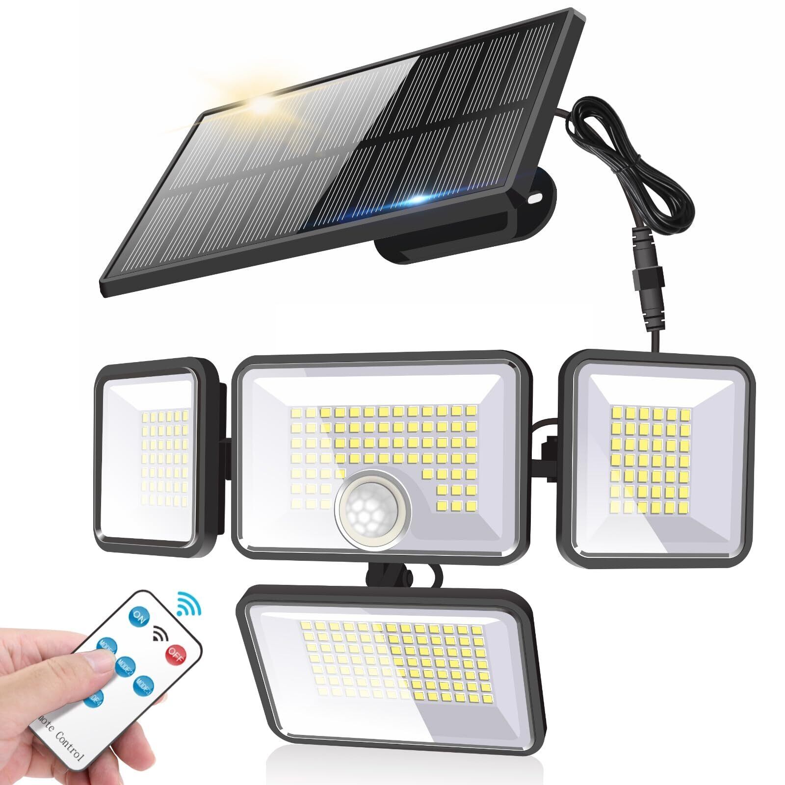 【特別価格】センサーライト ソーラーライト 屋外/屋内 分離型 4面発光 360°角度自由調整 4つモード 光束最大3000ルーメン 5Mケーブル IP65防水 自動点灯 大容量電池内蔵 壁掛け式 玄関/駐車場/庭/ガレージ 停電/防災/防犯対策 太陽光発電 リモコン付き