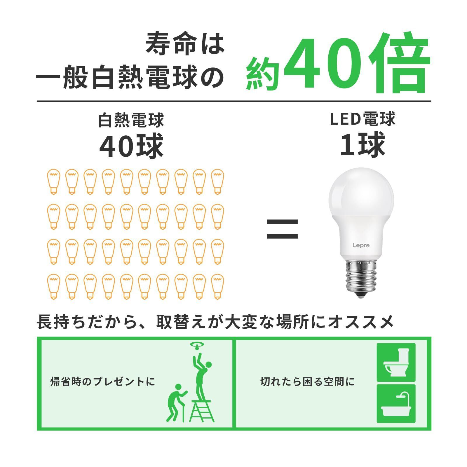 【人気商品】【E17】Lepro LED電球 E17口金 40W形 6個 440lm 電球色 3000K 非調光型 ミニクリプトン ミニランプ形電球 広配光タイプ 高演色性 PSE認証済み 密閉器具対応 省エネ キッチン 台所 トイレ リビング ダイニング 脱衣所 寝室 廊下 玄関照明用 小型電球