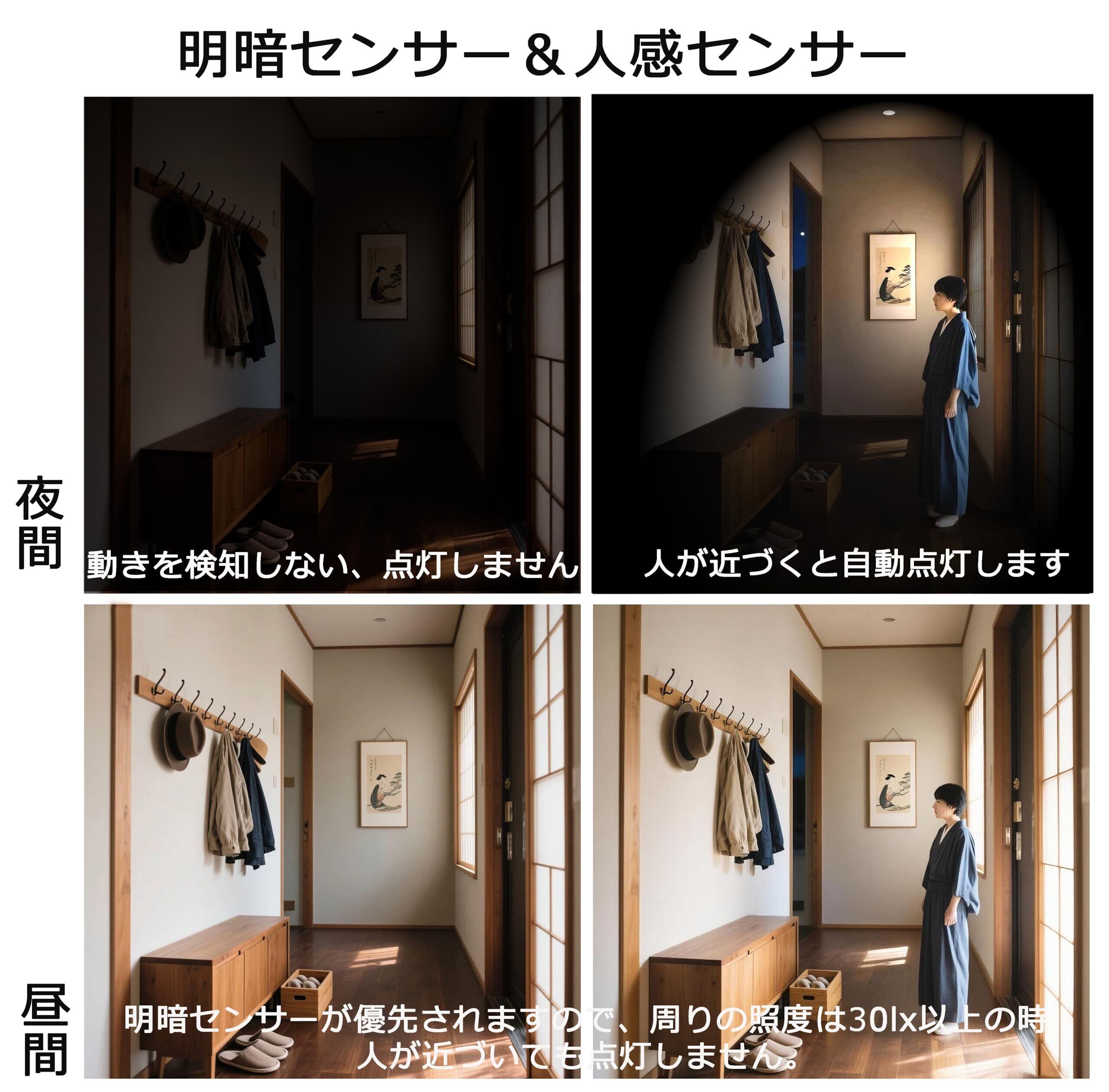 ■【便利な人感センサー搭載!】このGOHDLAMPじんかんせんさーは、E17口金の人感センサー付き電球です。自動点灯・消灯機能を備えており、周囲の明るさを感知して適切な明るさを提供しますので、暗闇での移動時も安心です。特に階段や玄関、廊下、トイレといったタイミングの良い明かりが求められる場所に最適です。