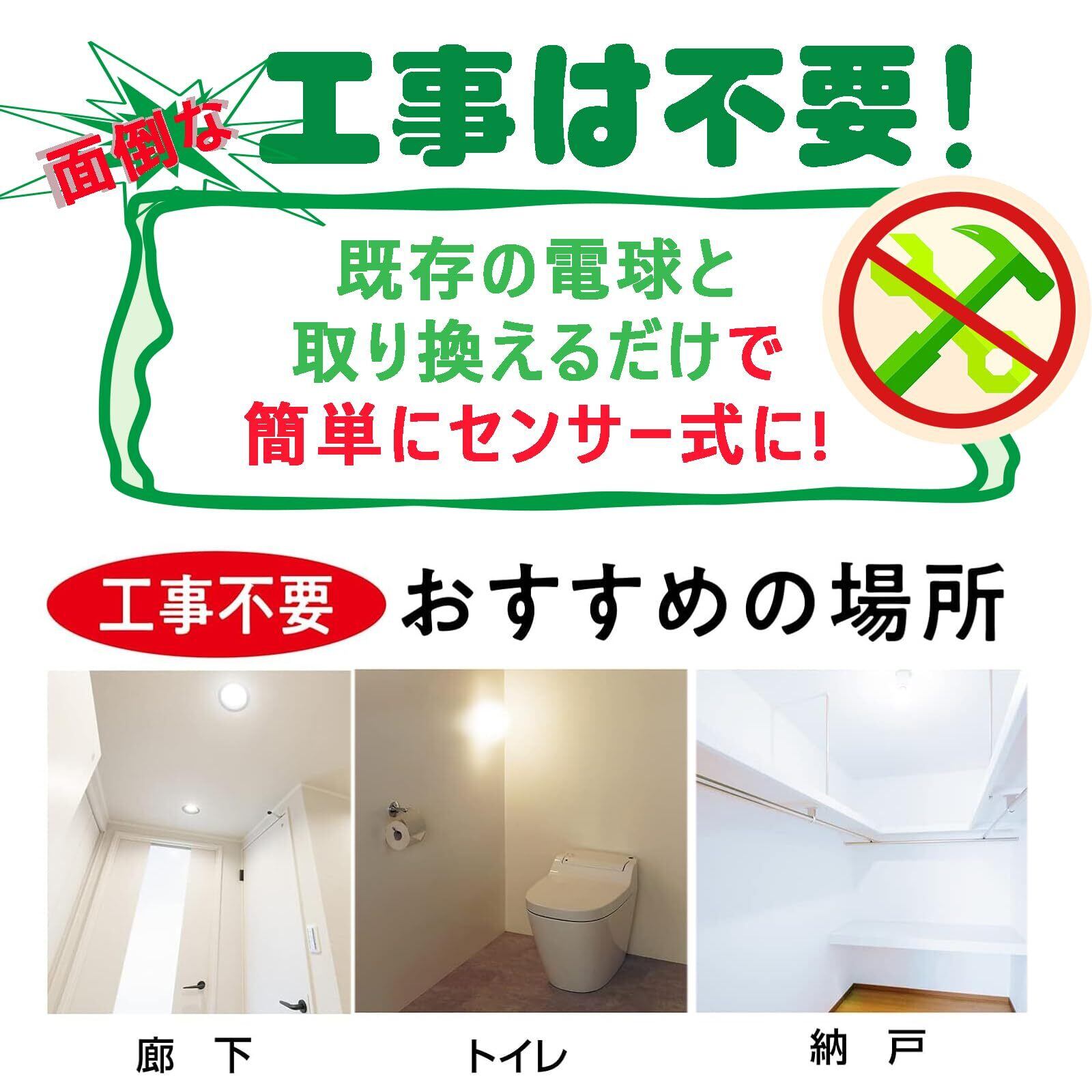 【 E17 人感センサーの特長】 ●E17口金の人感せんさー電球、小型電球と同じサイズなので、様々な照明器具に使用できます。 ●人感&明暗センサー機能付きLED電球● 周囲が暗いとき、人が近づくと自動点灯 ● 昼間、人が近づいても点灯しません。