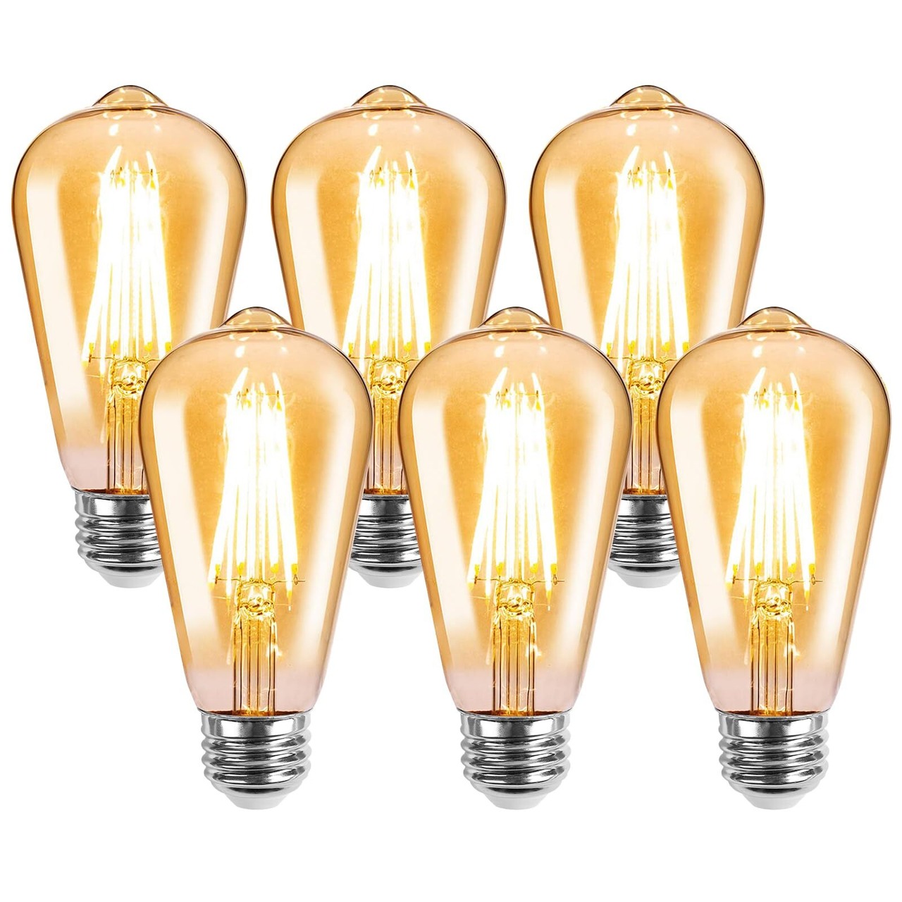 【E26】Lepro led電球 e26 エジソン電球 60W形 6個入り 電球色 2700K 全方向タイプ エジソンランプ エジソンバルブ 6W ST64 琥珀色 720lm 調光器非対応 フィラメント 電球 レトロ アンティーク おしゃれ 省エネ PSE認証済み シーリング ペンダント スタンド ブラケット適用