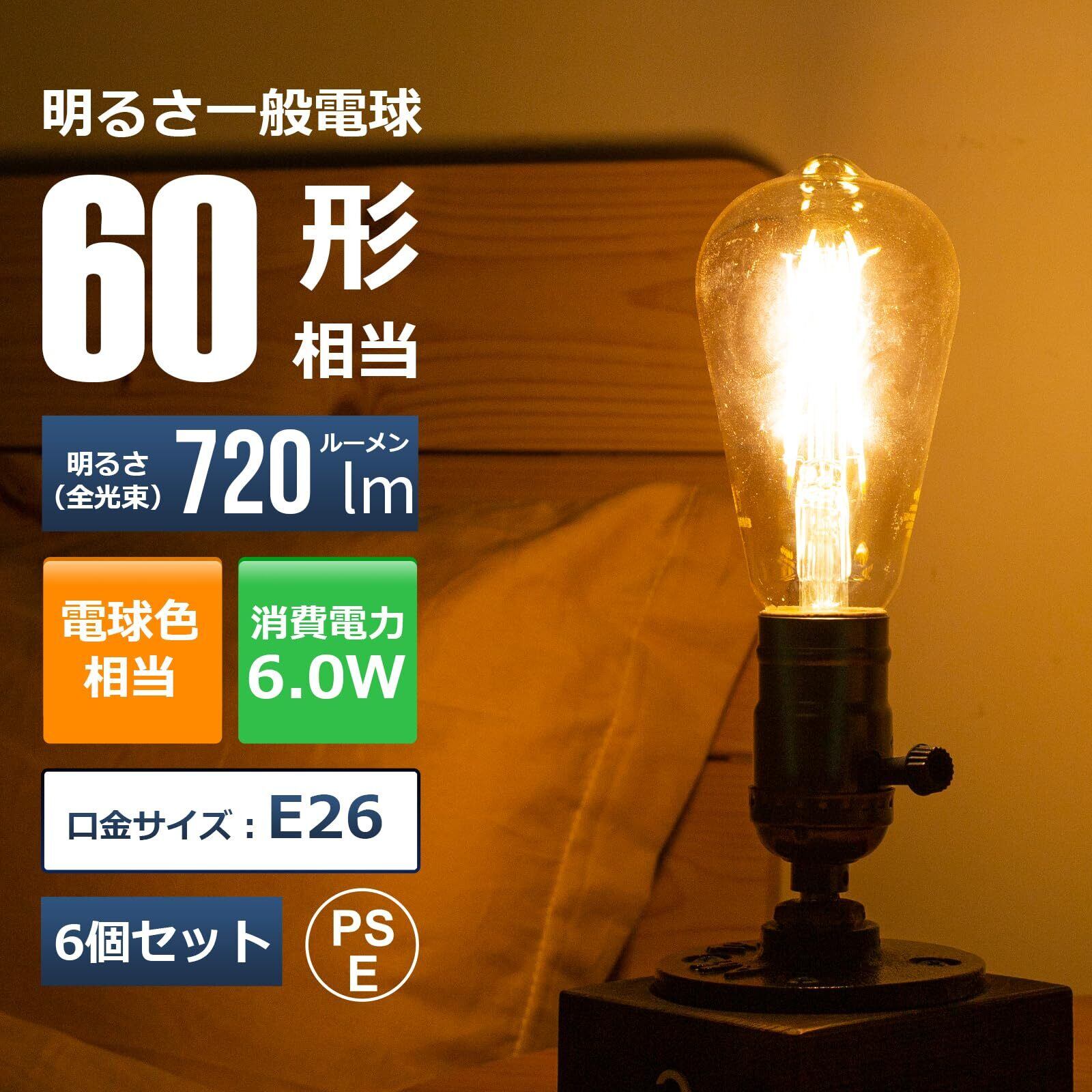 【人気商品】【E26】Lepro led電球 e26 エジソン電球 60W形 6個入り 電球色 2700K 全方向タイプ エジソンランプ エジソンバルブ 6W ST64 琥珀色 720lm 調光器非対応 フィラメント 電球 レトロ アンティーク おしゃれ 省エネ PSE認証済み シーリング ペンダント スタンド ブラケット適用