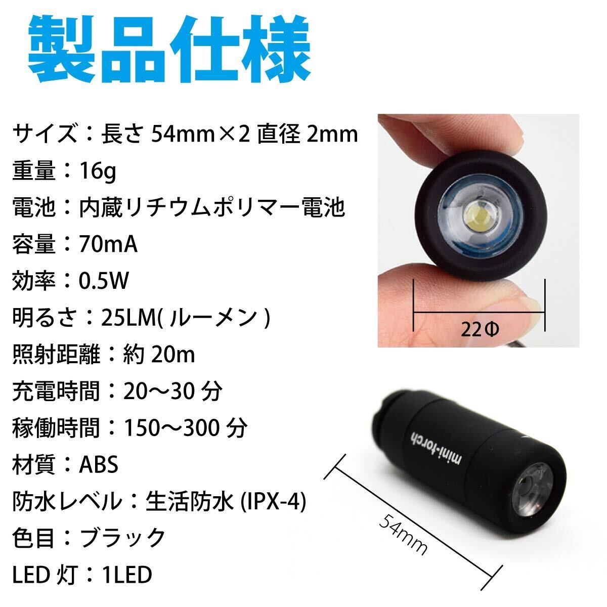 懐中電灯 USB充電式 軽量 16g 25ルーメン LED キーライト 防水 キーホルダー ハンディライトミニ 子供 携帯便利 防災 停電 対策 災害
