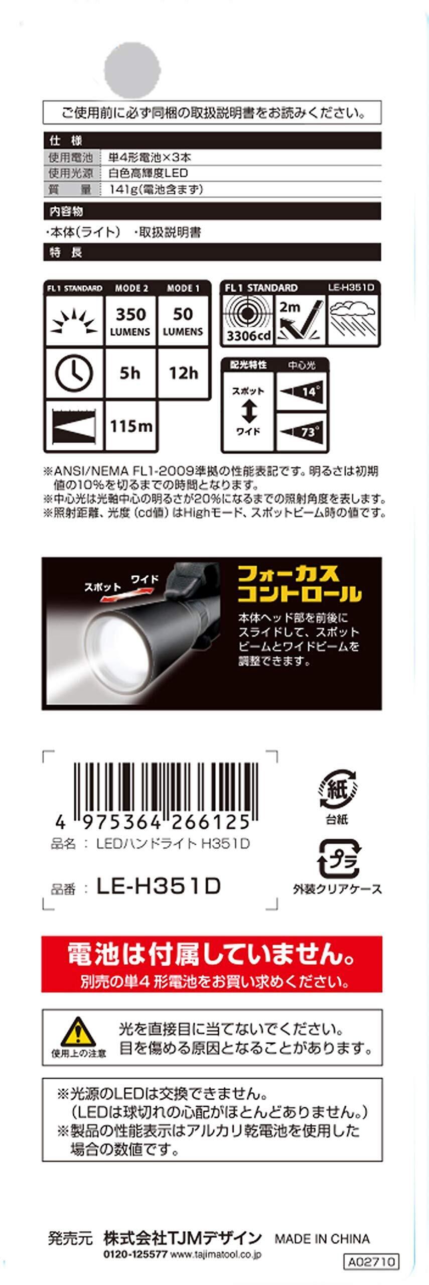 【在庫限り】タジマ(Tajima) LEDハンドライト H351D 明るさ最大350ルーメン LE-H351D