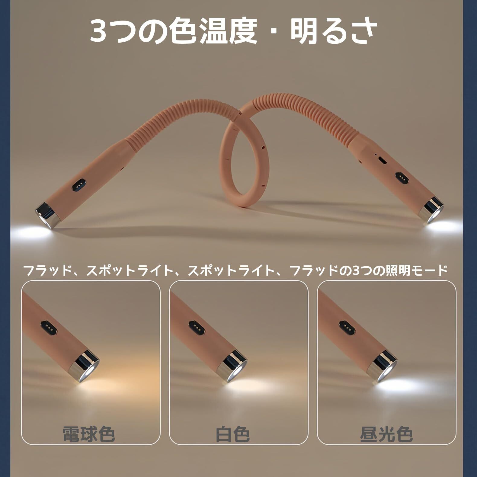 ネックライト 読書灯 ブックライトウォーキング 釣り 散歩用 作業 キャンプ 勉強グッズ ベッドサイド 首掛け懐中電灯 看護 夜勤 LED 充電式 停電防災用 (ピンク)