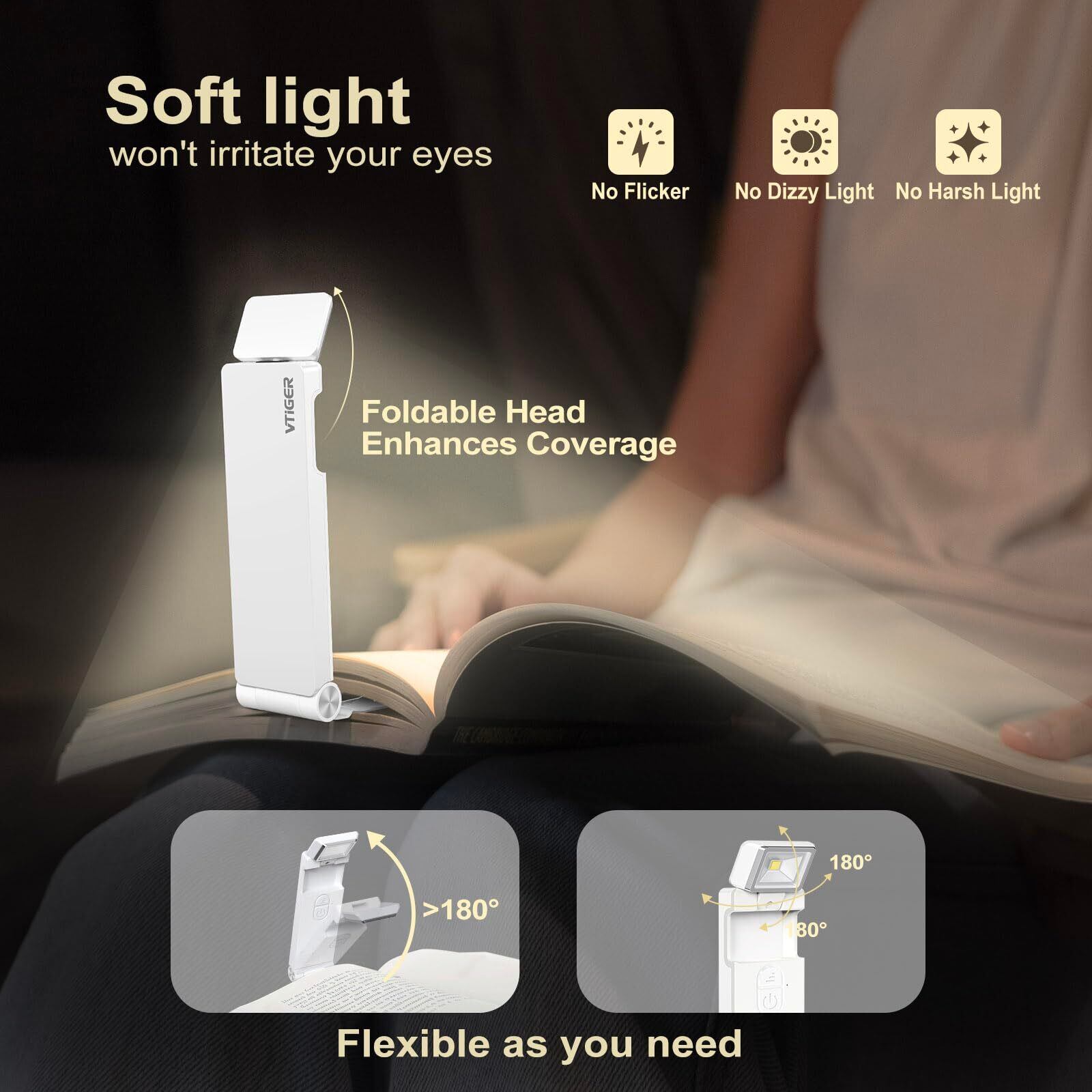 VTIGER 読書灯、折り畳み式 USB 軽量 充電式 LED 小型 図書灯 3つの色温度の琥珀色と4種類の明るさ,で耐久性があり 本の愛好家 子供に最適 寝室 読書 照明 ポータブル 持ち運び