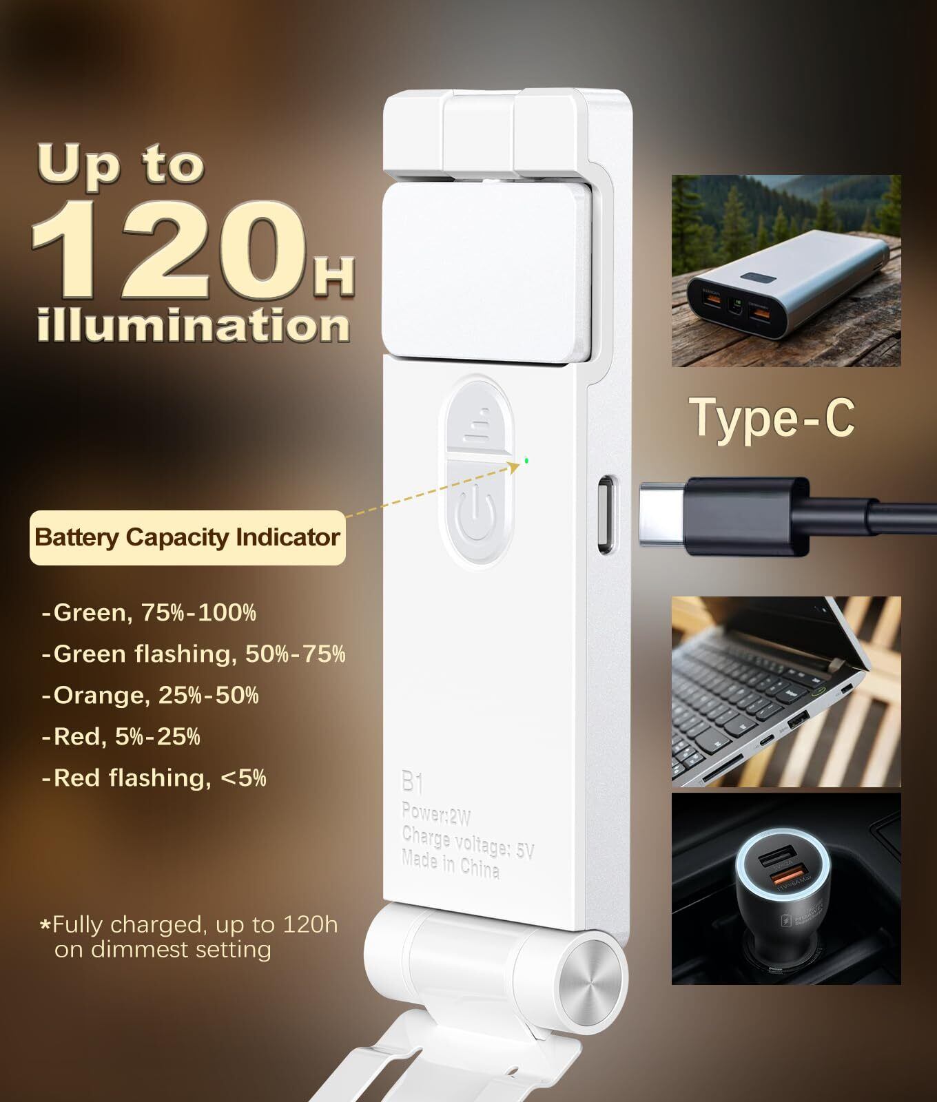 3色と4種類の明るさの調光と記憶モード:B 1図書灯は3種類の色モードを提供します:琥珀色(3000 K)/自然色(4000 K)/寒色(5000 K)、各モードには4つの調整可能な明るさレベルがあるので、あなたの目に最適な色を選ぶことができます。また、記憶モードで記憶することもできます。折り畳み可能な口金は、ページ全体を照らすのに十分に明るく、近くの人の邪魔にならないように光の範囲を増やします。柔らかな光、点滅せず、まぶしくなく、目を保護します