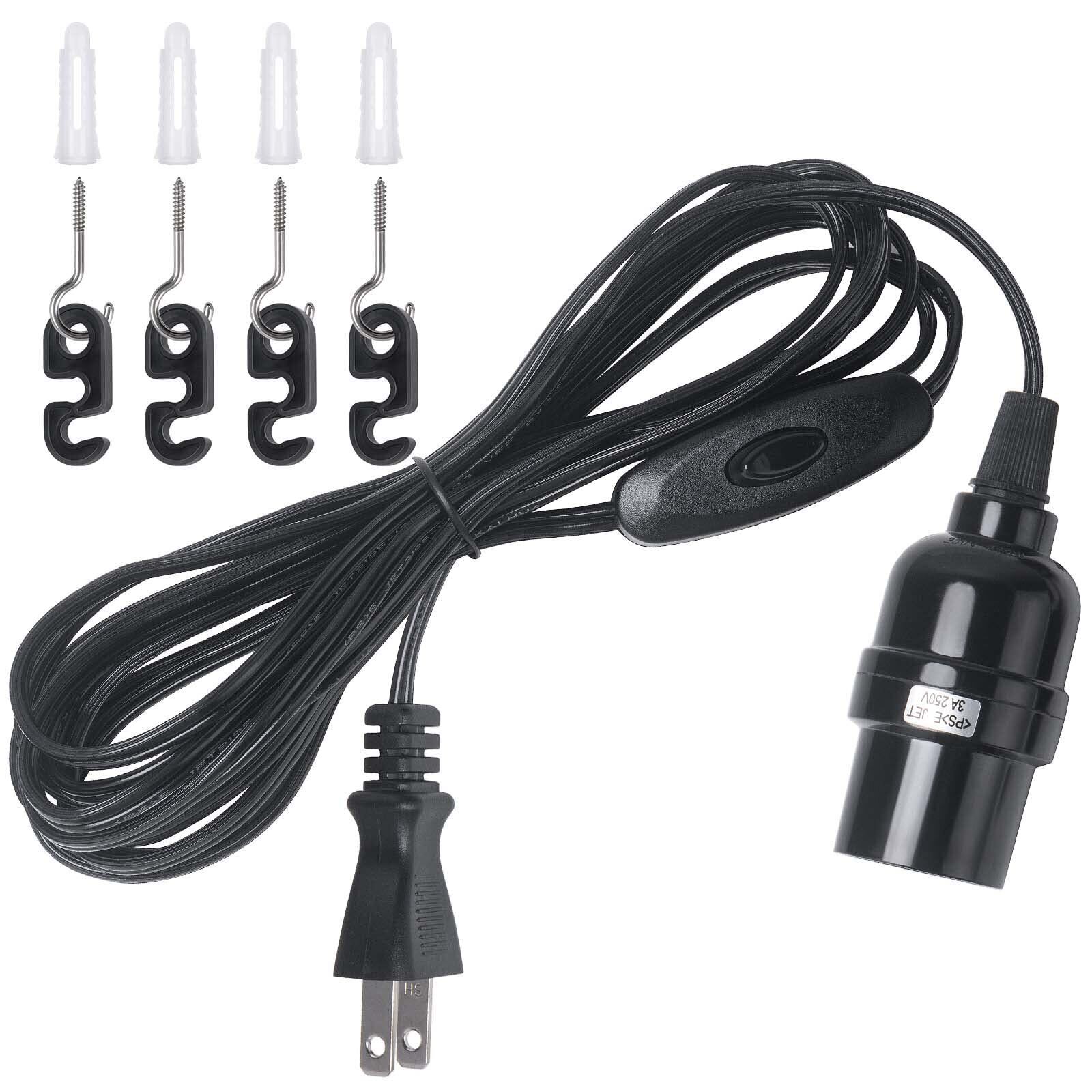 DiCUNO コード付き ソケット E26 電球ソケット コンセント スイッチ付き 吊り下げ 4m ブラック おしゃれ 1個入