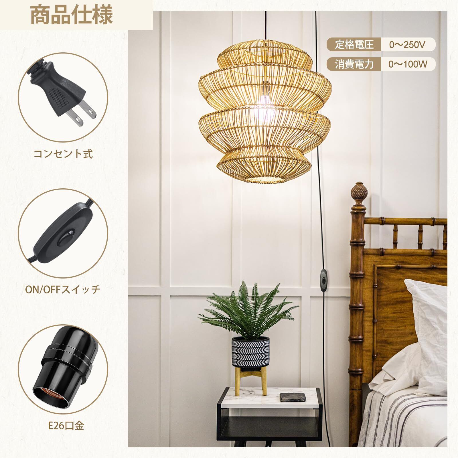 便利な操作:ON/OFFスイッチ付きで、プラグの抜き差しで電球を点灯や消灯する手間を減らします。操作を容易にするため、スイッチをプラグから約130cmに設置しました。