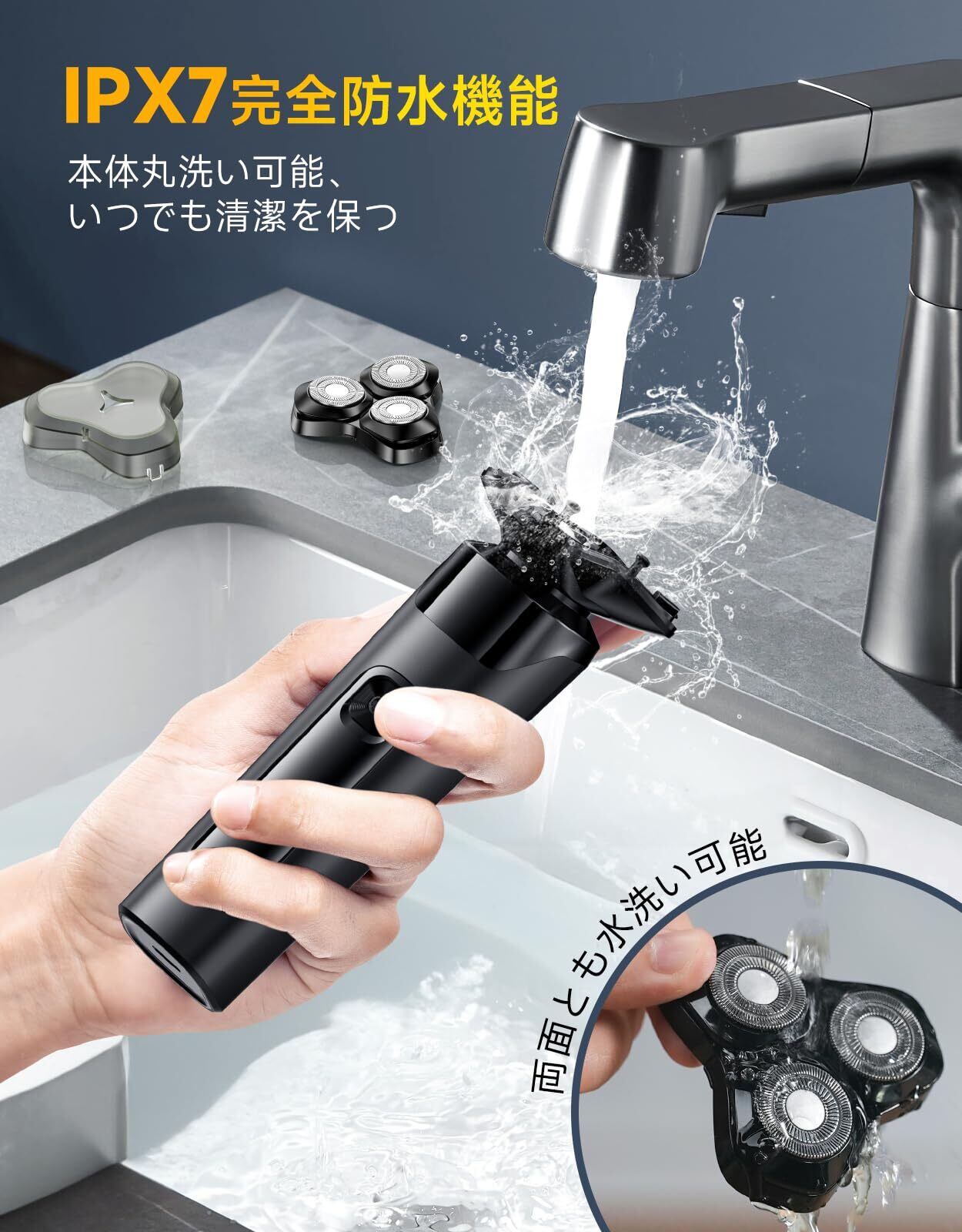 ■【IPX7完全防水で安心!】このシェーバーはIPX7の防水性能を誇り、浴室内でも使用可能です。シェービングフォームやジェルと一緒に使えるため、ウェットシェービングも快適。さらに、丸洗いもできるため、清潔に保つのが容易です。