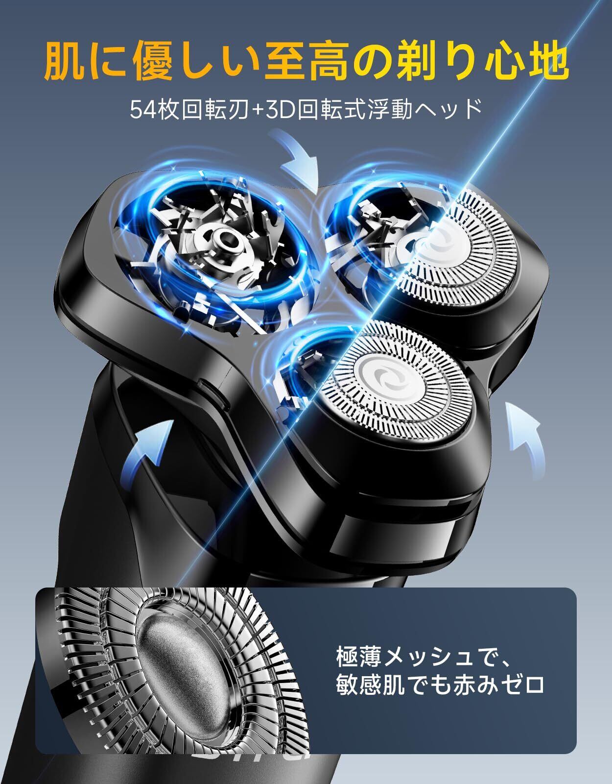 ひげそり 電動シェーバー 【2025新登場 360°深剃り】 電気シェーバー メンズ 髭剃り USB充電式 3刀頭 54枚刃 二重剃刀ネット 深剃り 低騒音 IPX7完全防水 1時間急速充電 乾湿両用 軽量 高速回転モーター LEDディスプレイ付き 360°フレックスヘッド 男性用 シェーバー 父の日 誕生日プレゼント