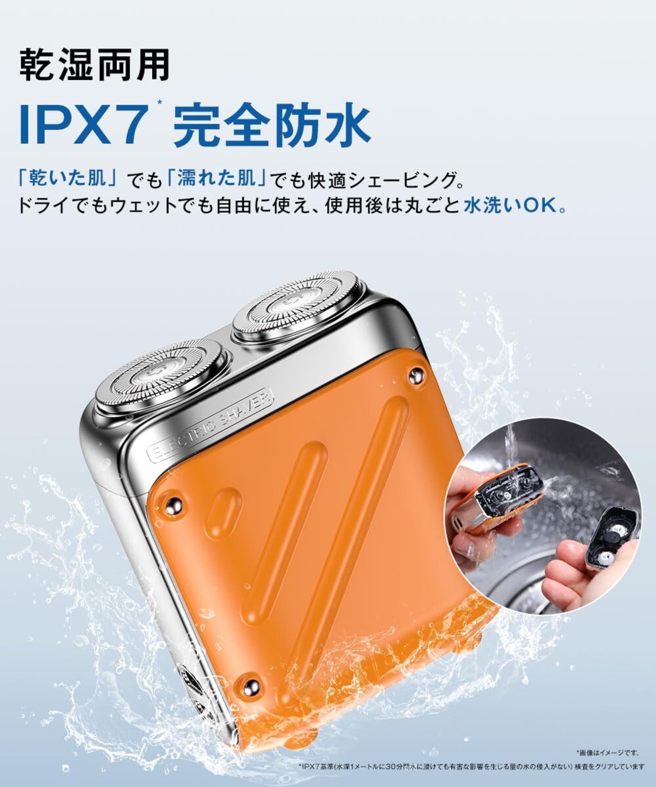 特徴 ポータブル コンパクト, 水洗い可能 IPX7完全防水, 海外出張 旅行, 軽量 小型, 高速充電 着脱式ヘッド