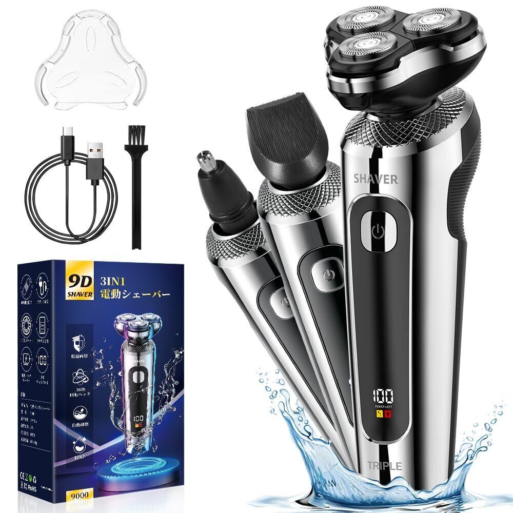 【限定セール】Neikoy【2025新デザイン 3in1 ひげそり 電動シェーバー】 IPX7完全防水 360°回転式 自動研磨 深剃り 低/高速 ドライ&ウェット両用 USB Type-C 5min急速充電/2hフル充電 LEDディスプレイ付き 電池残量表示 シェーバー メンズ 出張/車内常備 軽量便利 電気シェーバー バリカン 鼻毛カット 人間工学デザイン 18ヶ月長期 保護キャップ 誕生日プレゼント 日本語説明書