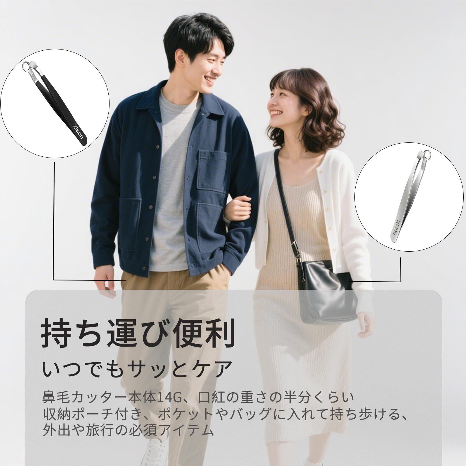 【2025アップグレード版】 鼻毛カッター 手動 メンズ レディース ステンレス製 収納ポーチ付き 持ち運び便利 耳毛 鼻毛 ハサミ 使用簡単 安全 痛みなし (ブラック)