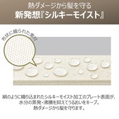 【うるおいキープ】 絹のように織り込まれた『シルキーモイスト』加工のプレート表面が、水分の蒸発・沸騰を抑えてうるおいをキープ。熱ダメージから髪を守ります。