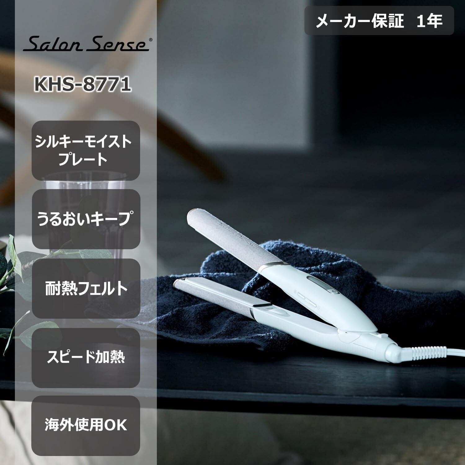 【数量限定】コイズミ サロンセンス ヘアアイロン ストレート シルキーモイスト 耐熱フェルト 海外対応 ホワイト KHS-8771/WH
