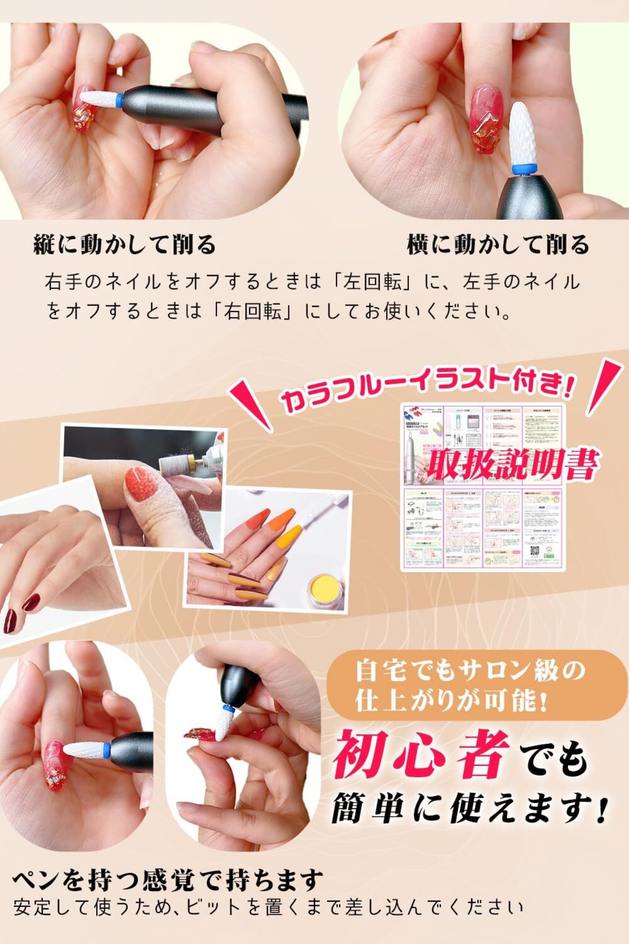 ■【日本語取扱書付きで安心!】使い方がわからない方でも安心の日本語取扱書が付いており、ステップバイステップでの操作が可能です。手軽にサロン品質のネイルケアを楽しむことができる、心強いアイテムです。