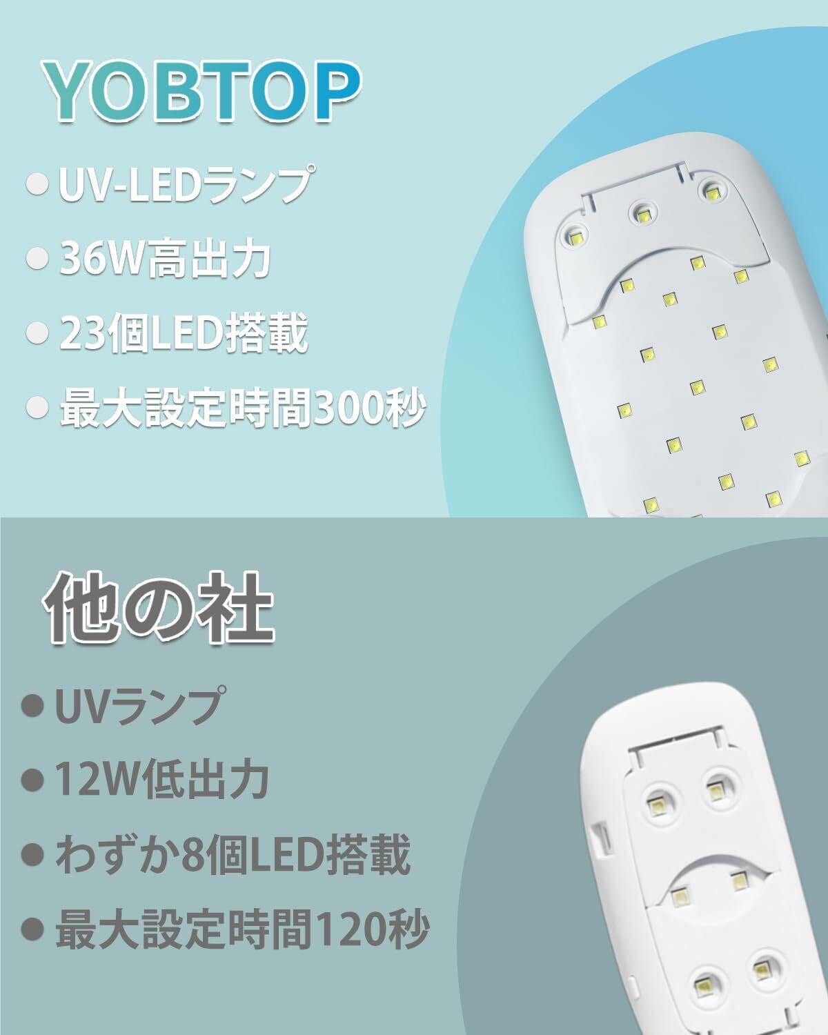 【UV-LED二重光源のUVライト】36W UVライトは23個の最新UV-LED二重光源を備えており、波長(365nm+405nm)、速乾対応を実現、短時間で硬化が完了します。UVレンジ作業や快適なハンド/フットネイル体験を提供します。