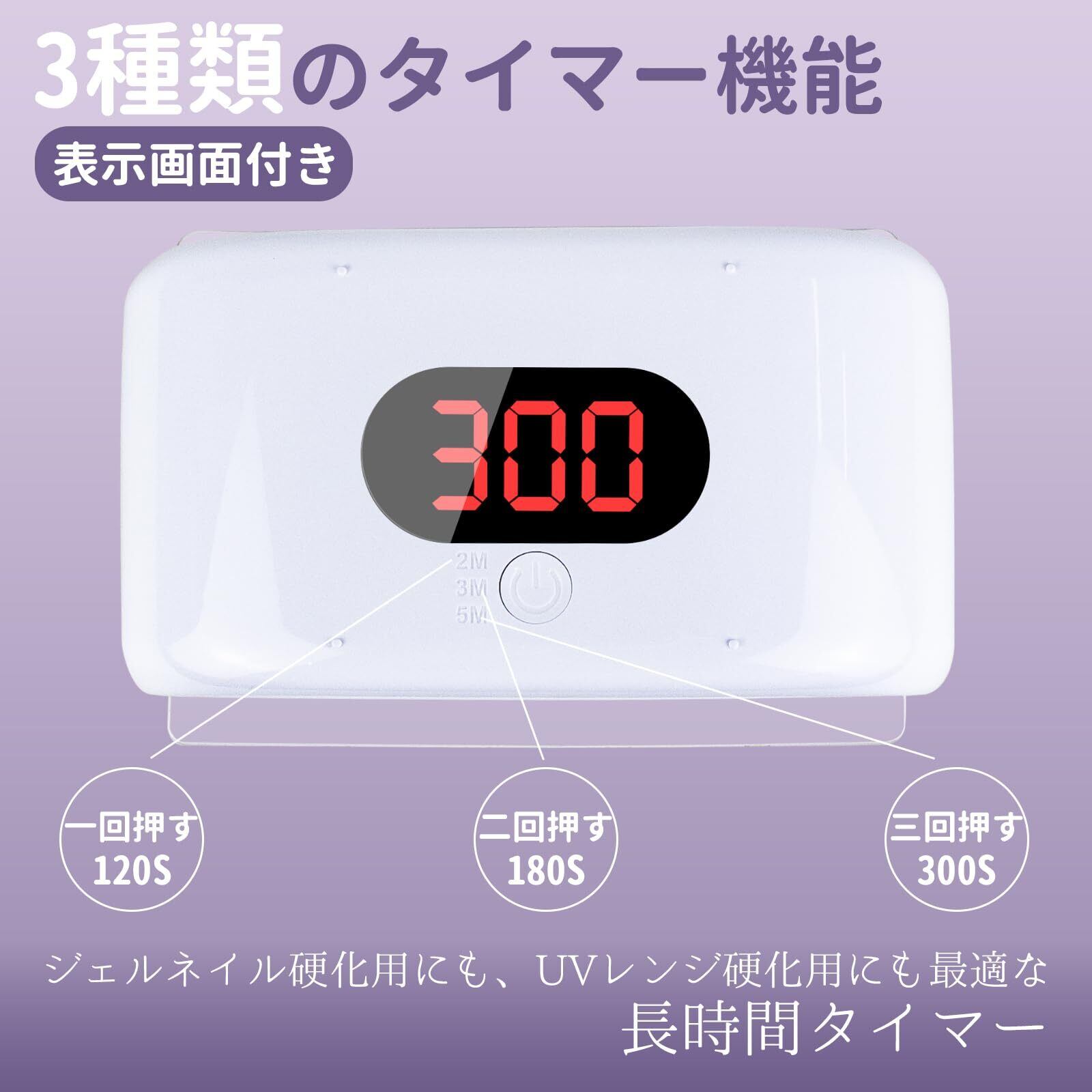 【120秒・180秒・300秒タイマー設定可能】uvレジンライトは120秒・180秒・300秒の三種類の長時間タイマー機能が搭載し、ボタンを押すだけで切り替えられ、素早く効率的に硬化できます。準備や片付けも手軽く、初心者でも始めやすいレジン専用ライトです。