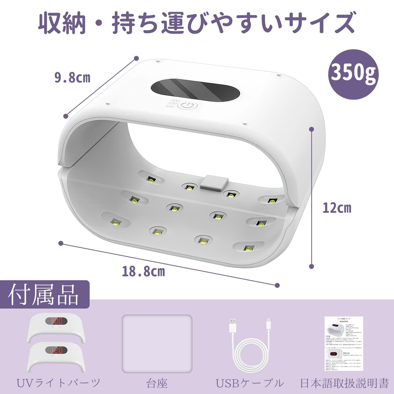 UYTON レジン ライト ネイルライト 両面 uvレジン ライト 36wレジン用 LED UV ネイル硬化ライト ジェルネイル 長時間タイマー設定 LED表示画面付き DIYクラフト USB充電式 二層構造 ランプ ネイルランプ 日本語取扱説明書