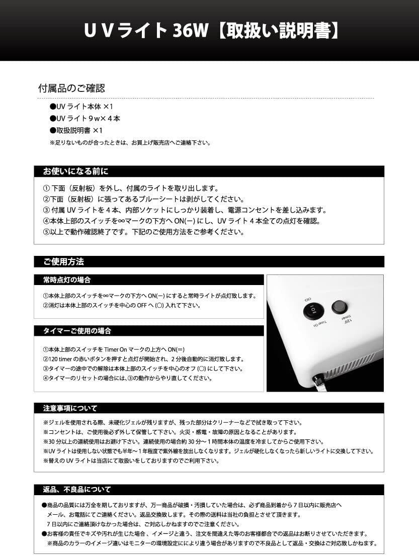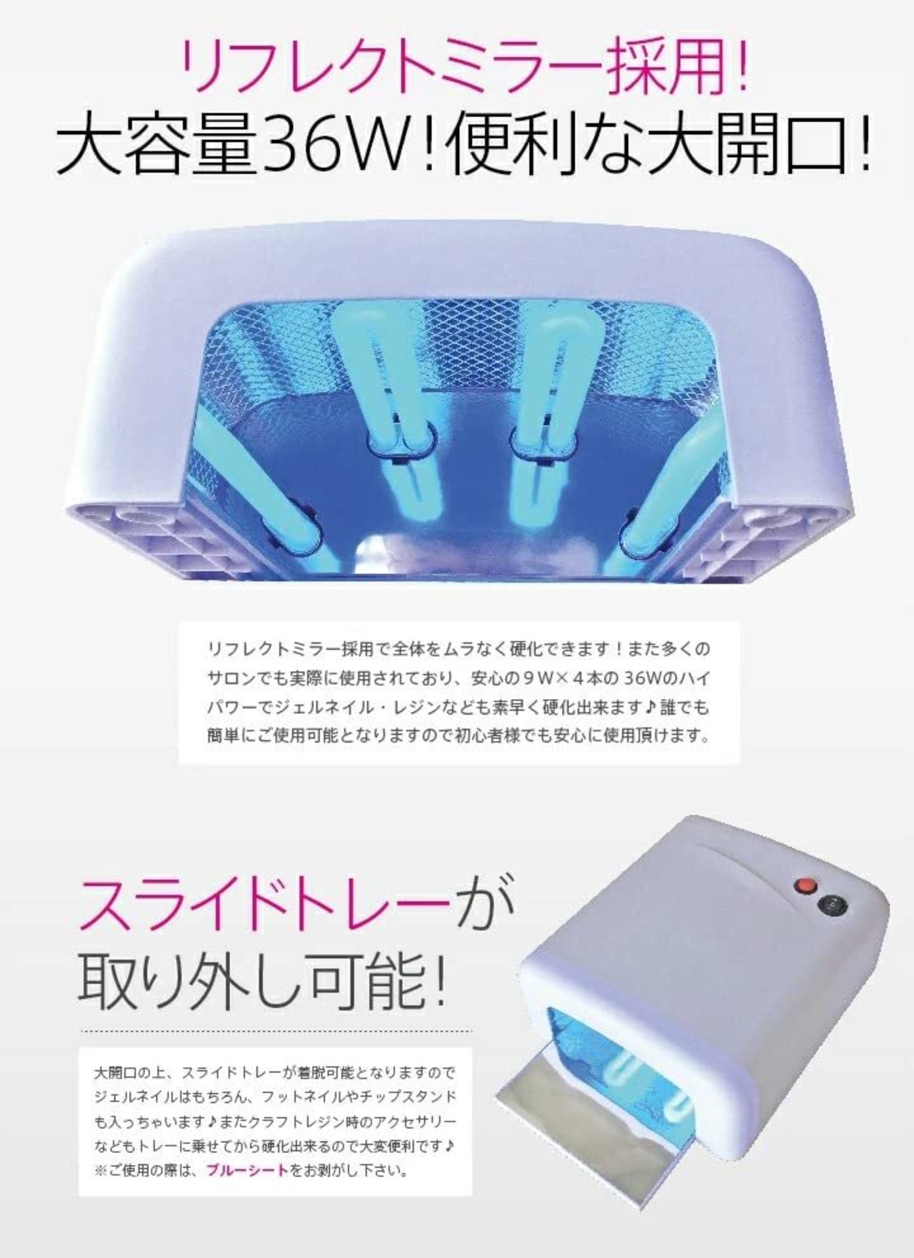 UVジェルネイル・UVクラフトレジン UVライト 36W 【取扱説明書・6ヶ月書付き】 (ホワイト)
