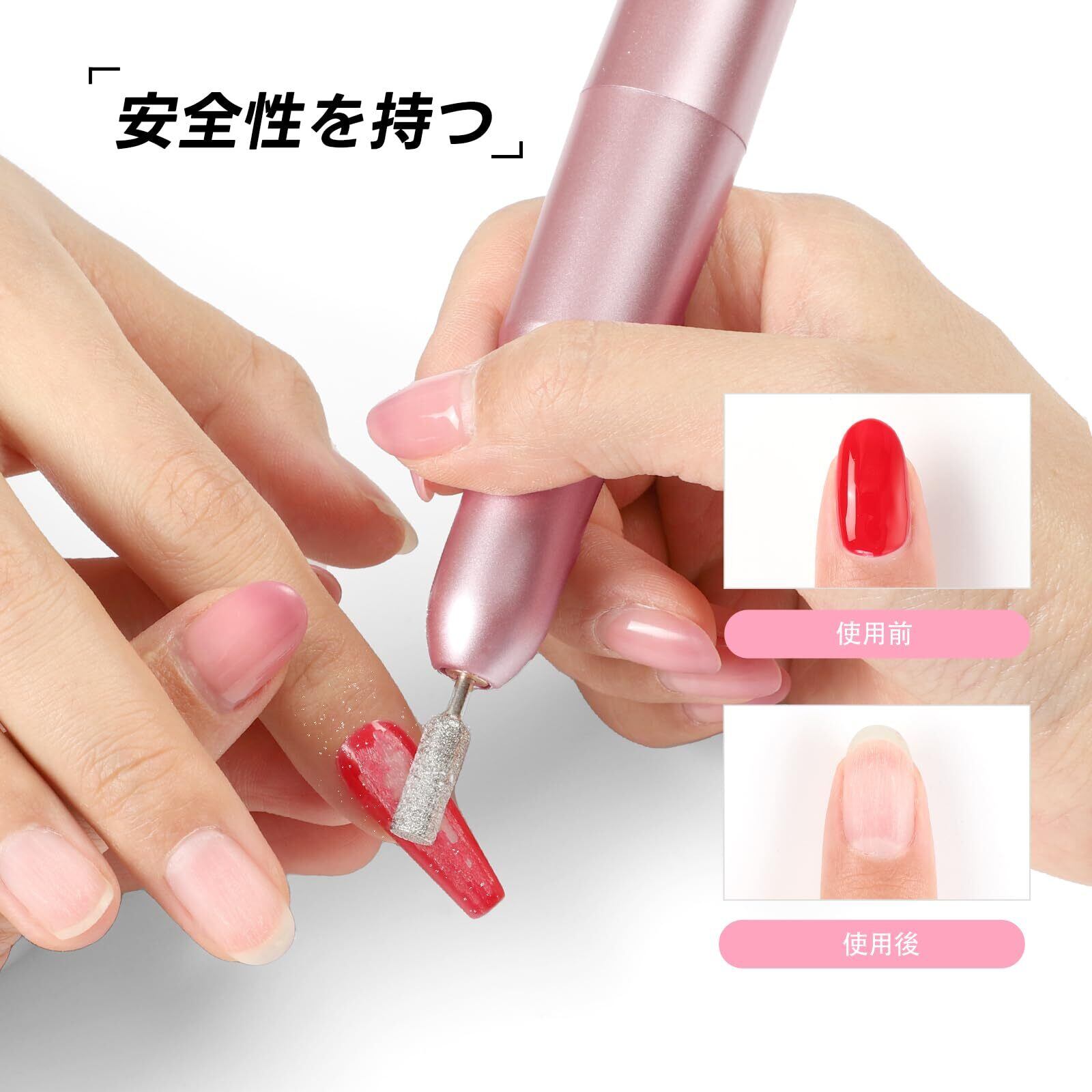 【USB給電式&持ち運びやすい】USB給電式で、好きな場所で使えて、旅行や家族での使用におすすめ。ペン型デザインネイルマシンの本体も軽量なので、持ち運びにも便利です。いつでもどこでもどこでもセルフネイルができます。