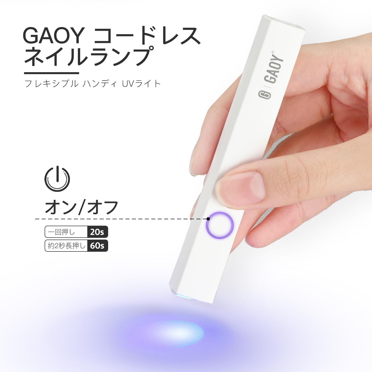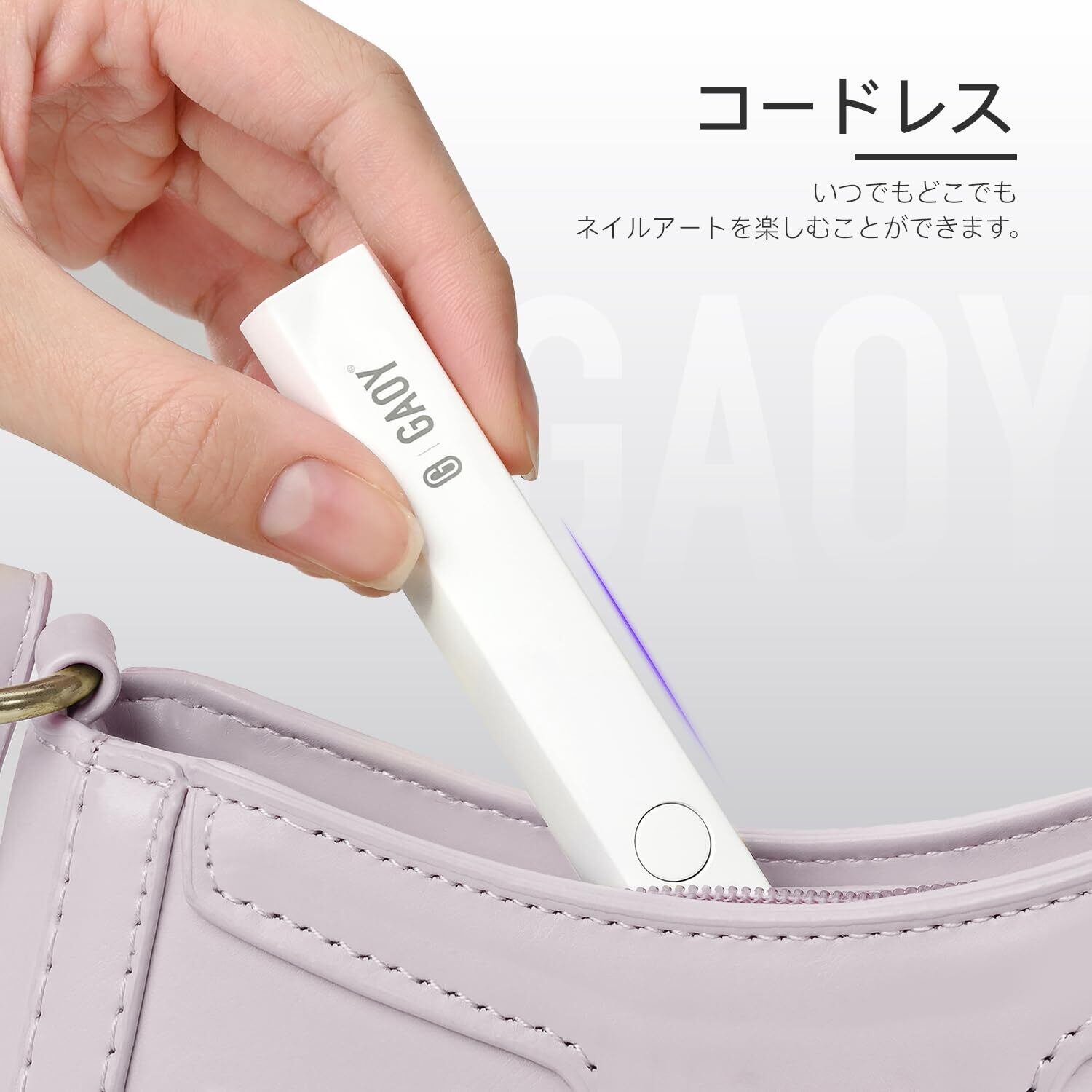 GAOY ネイルライト ペン型 UV&LED ライト ジェルネイル用ライト レジン用 ミニネイルライト 二階段タイマー コードレス 硬化ライト コンパクト 充電式(ホワイト)