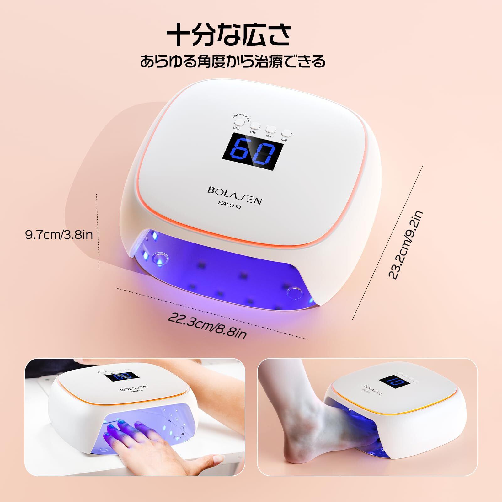 ■【プロフェッショナルな仕上がりを一台で!】BOLASENのHalo 10 UV LEDネイルライトは、60Wの高出力を誇り、瞬時にジェルネイルを硬化させることができます。サロン品質の仕上がりを自宅で手軽に実現し、あなたのネイルアートを一段と魅力的に演出します!