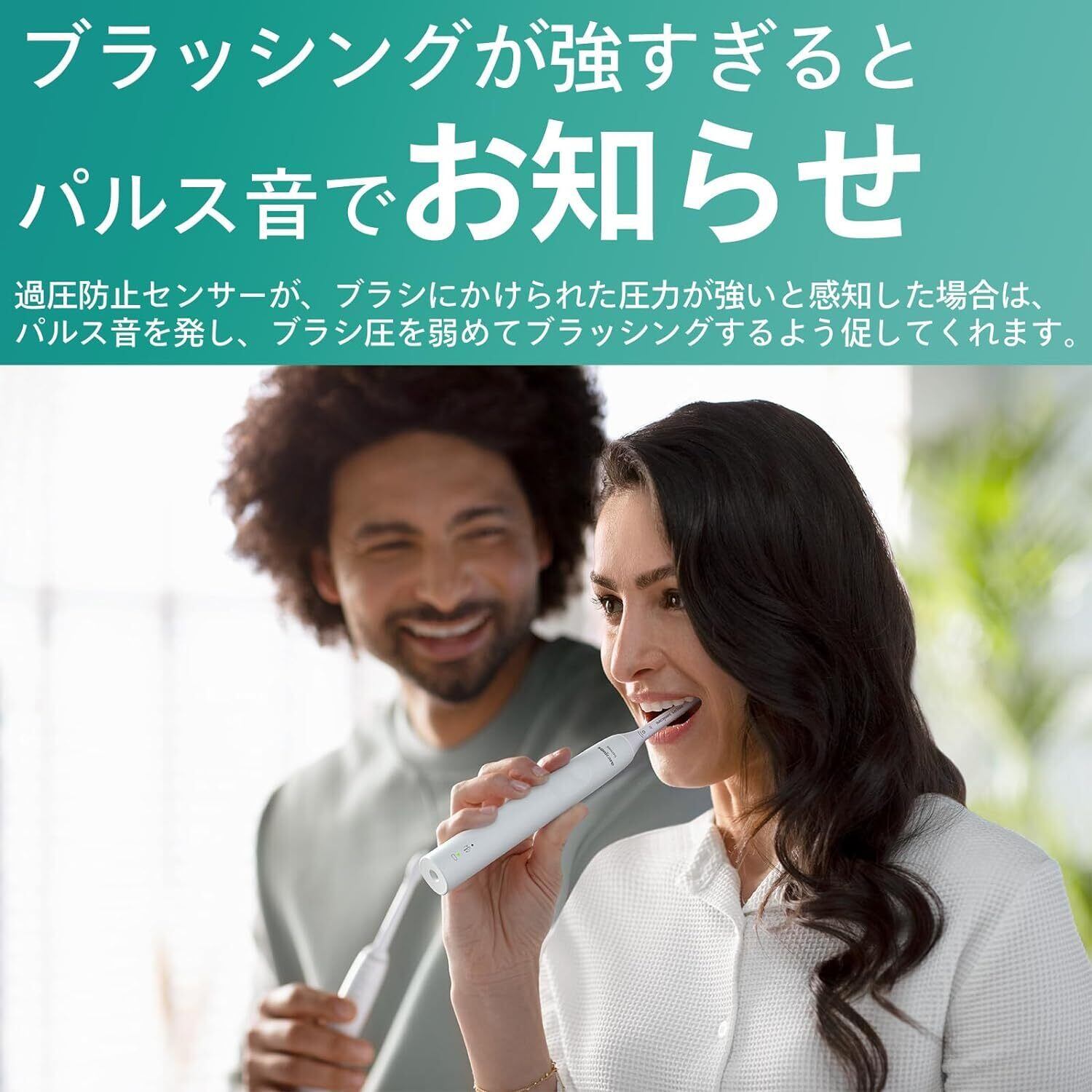 スマートタイマー機能(ブラッシング自動停止機能)により2分間で自動的に停止し、しっかり 2分間磨けると同時に、磨きすぎを防止 過圧防止センサー機能により、ブラシにかけられた圧力が強いと感知した場合は、ブラシ圧を弱めてやさしくブラッシングするように促すパレス音機能搭載
