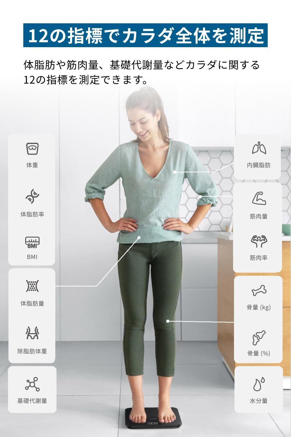 Anker Eufy (ユーフィ) Smart Scale A1(体重体組成計)【アプリ対応/Fitbit連携/体脂肪率/BMI/基礎代謝量/水分量/体脂肪量/骨量/内臓脂肪/コンパクトサイズ】ブラック