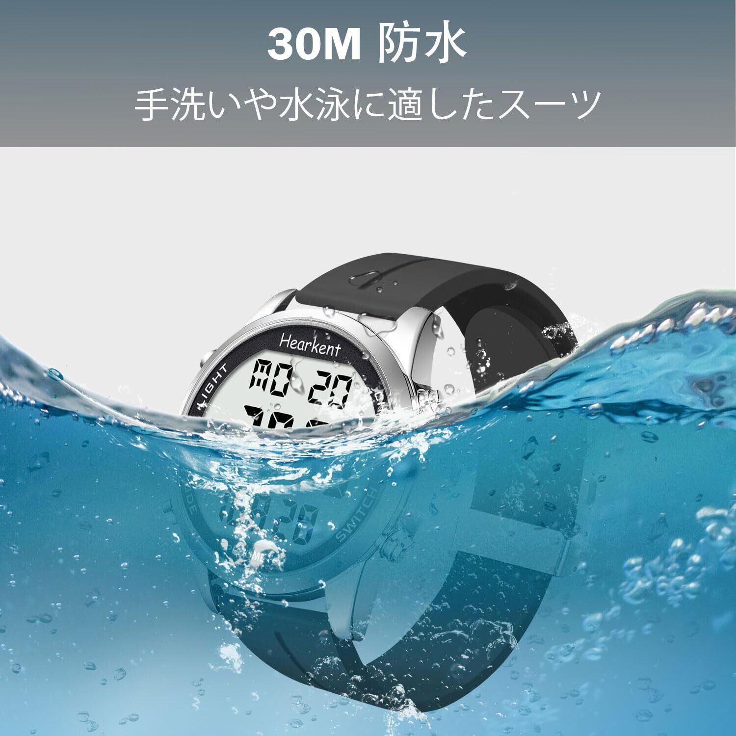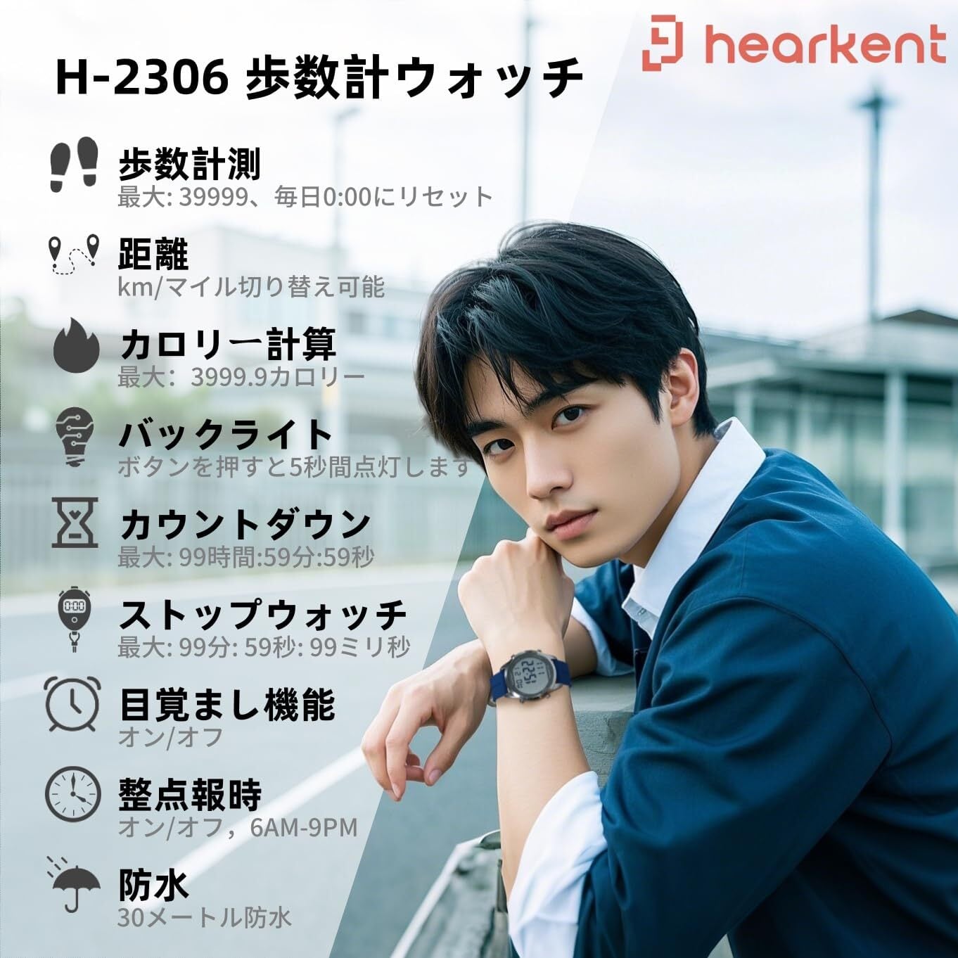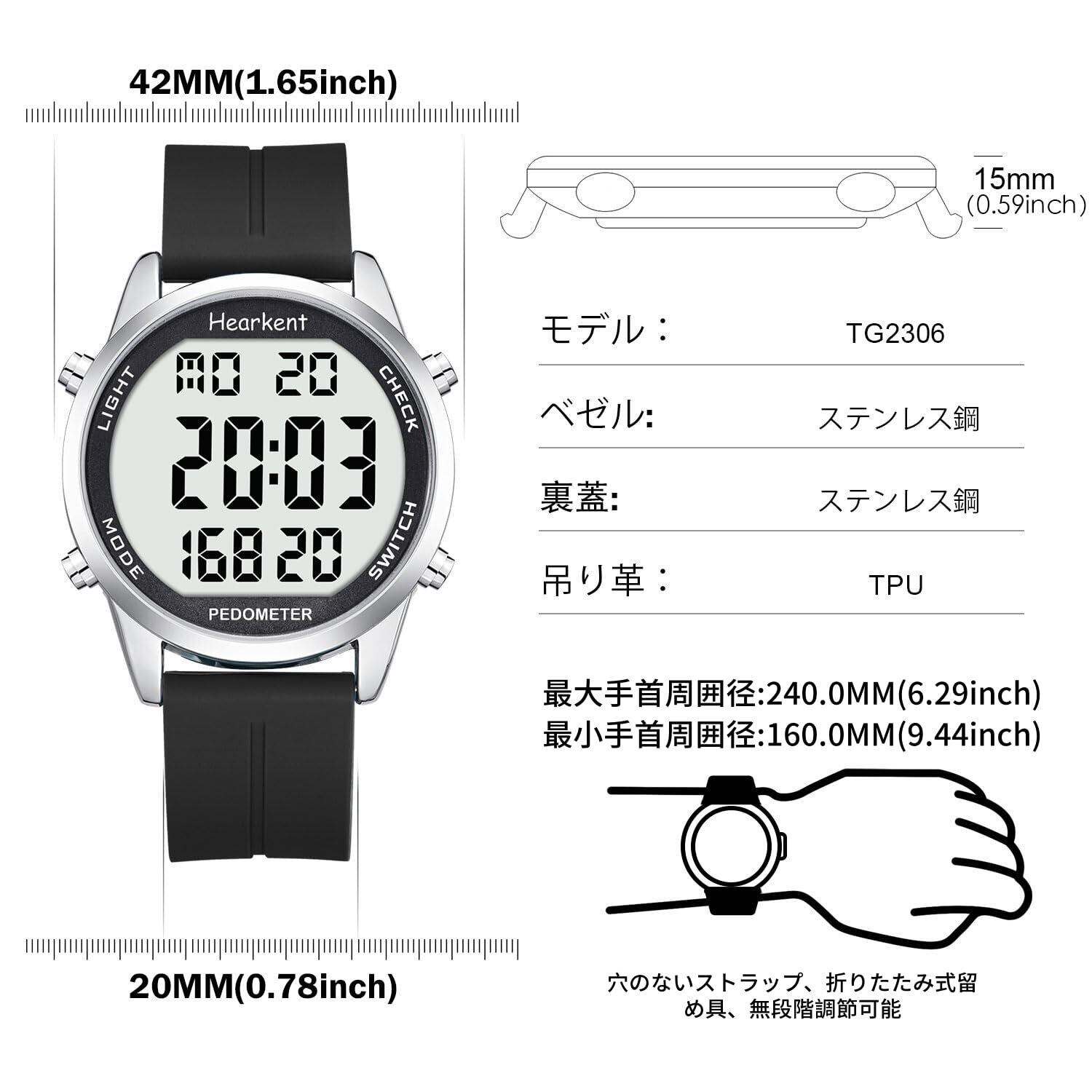 ■【スタイリッシュで機能満載の腕時計!】Hearkentの歩数計防水腕時計は、デジタルLCDディスプレイを搭載したスタイリッシュなデザインが特徴です。内蔵の時間表示、歩数、走行距離に加え、アラーム機能もついており、日常生活に便利さをプラスします。