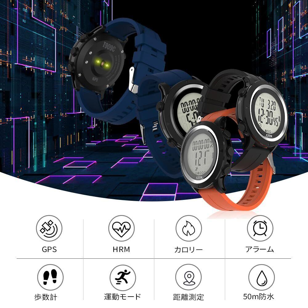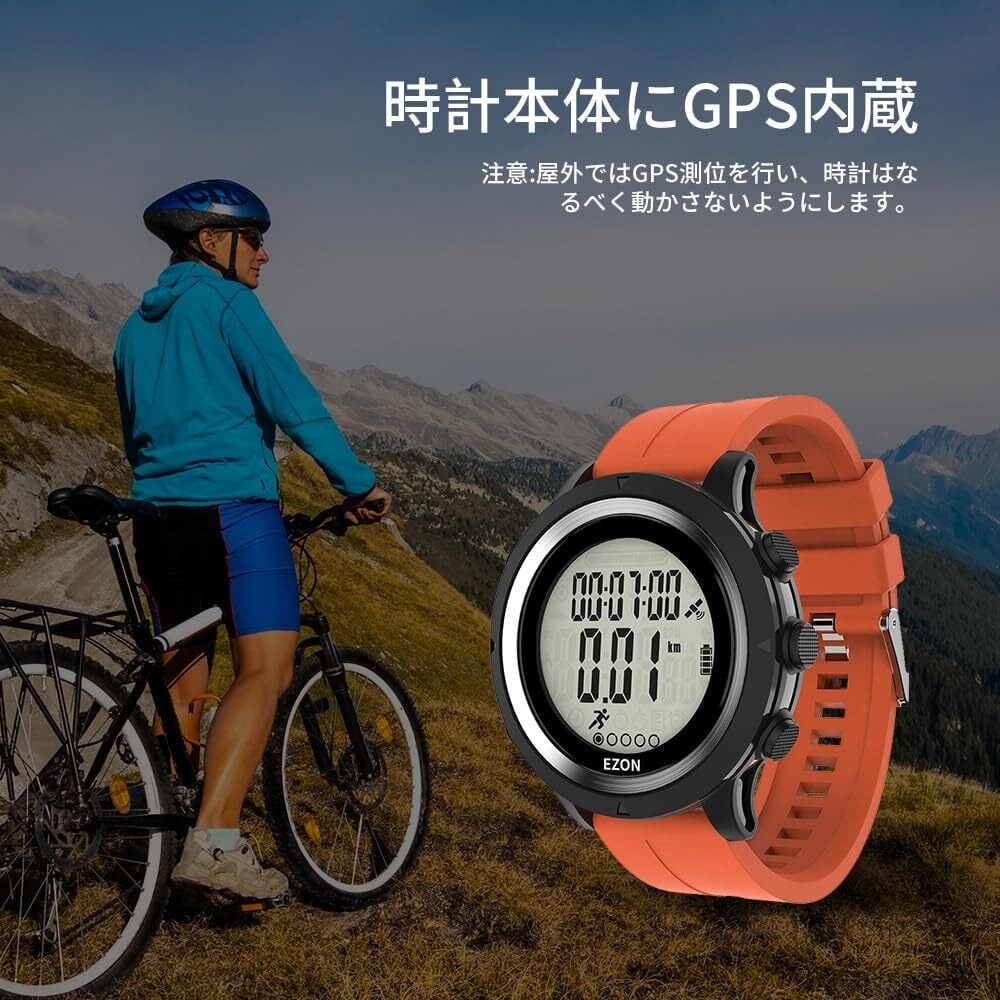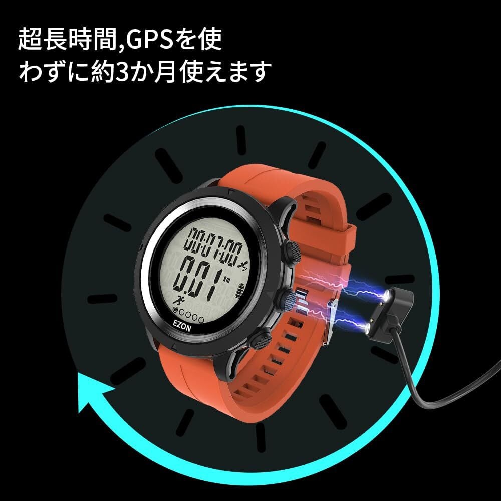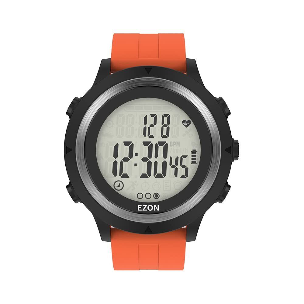 ランニングウォッチ GPS 光式心拍計 腕時計 デジタル ウォッチ 防水 軽量 歩数計 EZONT909 (オレンジ)