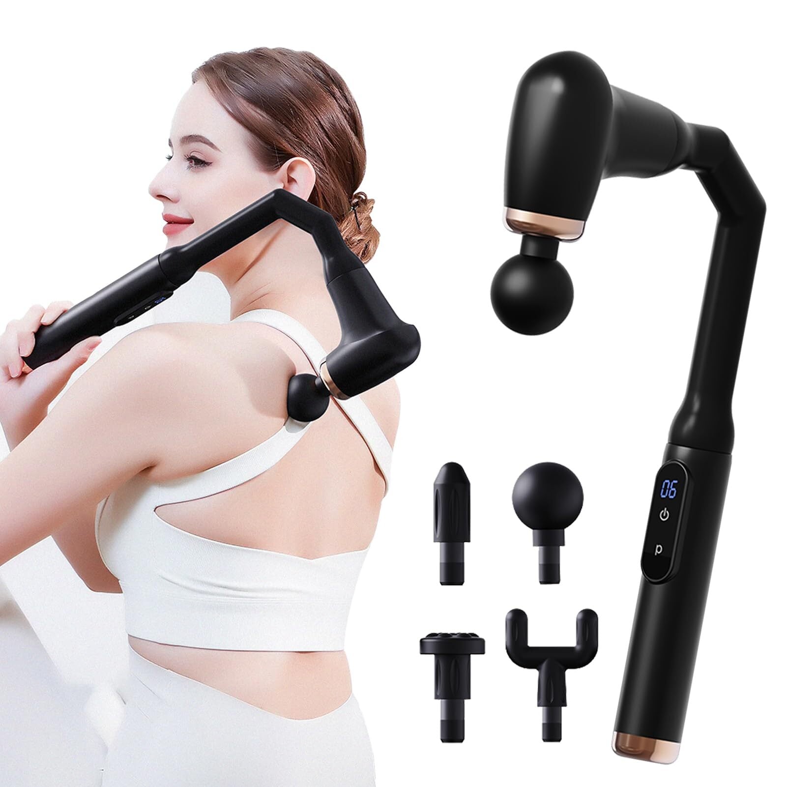 【全方位の筋肉ケア】:人体工学に基づく長柄デザインで、手が届きにくい背中や腰でもしっかりとトレーニングができます。4種類のアタッチメントが付属しており、全身のセルフケアを簡単に実施できます。球形(太もも、背中、臀部などの大きな筋肉に適し)、円柱形(足の裏などの筋肉を刺激したい場合に適し)、平形(体の各部分に適し)、U字形(前腕や脊柱、アキレス腱などの筋肉に適し)。