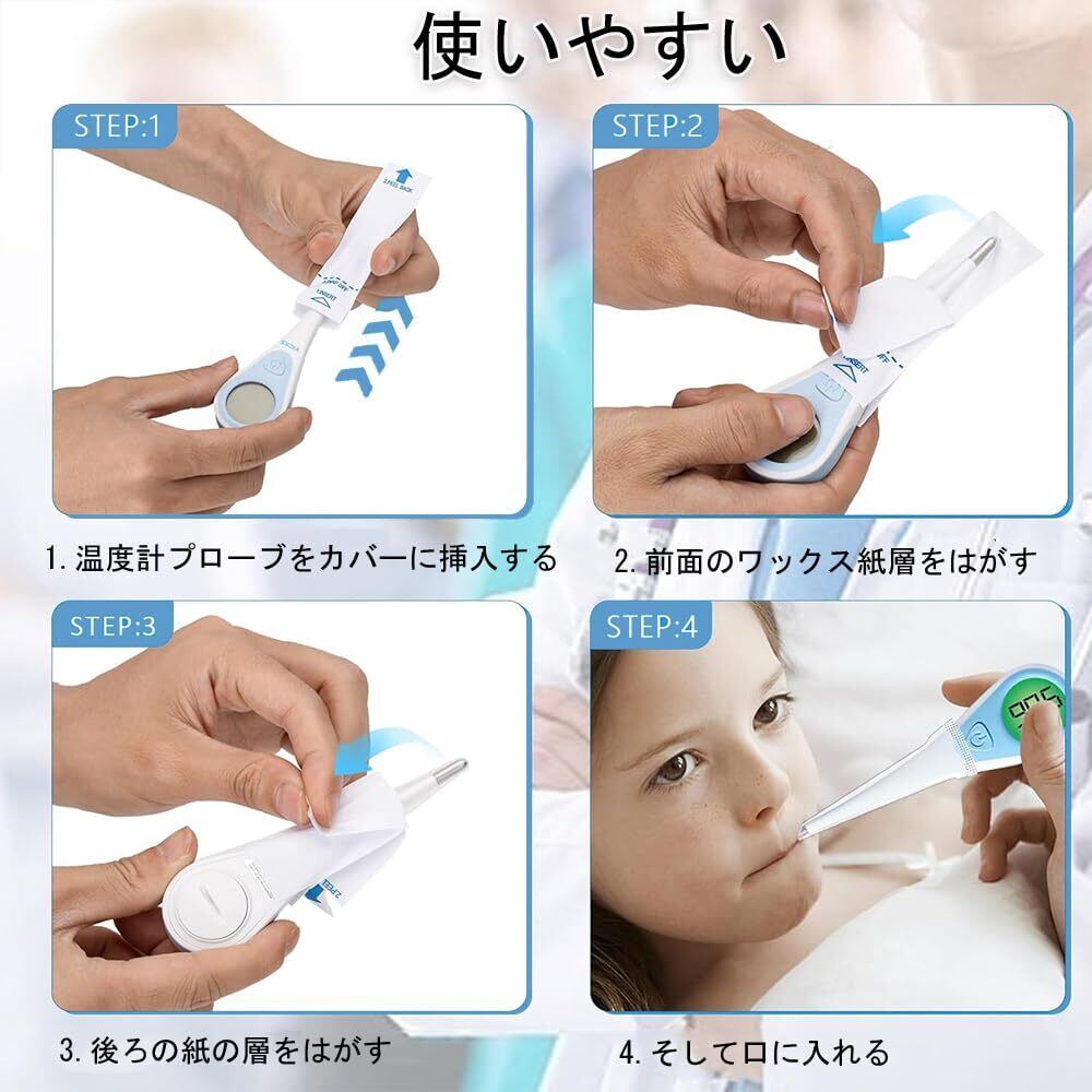 【使いやすい】:簡単な挿入とはく離設計を採用し、これらの温度計カバーを使用することは容易である、プローブを挿入し、外側のワックスペーパーをはがし、使用後はカバーを捨て、温度計を元の状態に保つだけ。